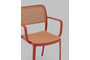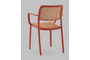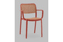 Yona с подлокотниками — это удачное сочетание современного минимализма и винтажного шика. Характерный плетёный узор сиденья и спинки в бежевом оттенке отсылает к традиционным ротанговым стульям, но выполнен полностью из прочного пластика. Красный каркас подчёркивает тёплую, натуральную эстетику, делая стул уютным акцентом в любом интерьере.