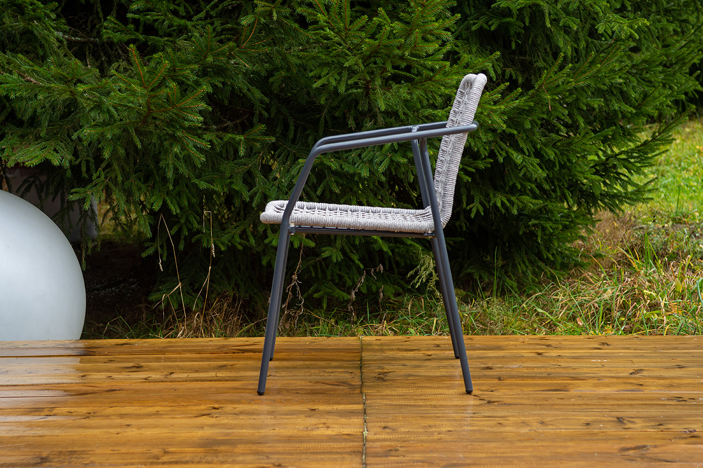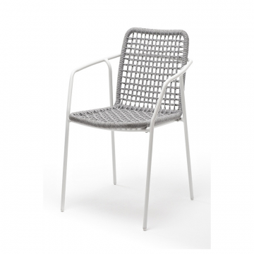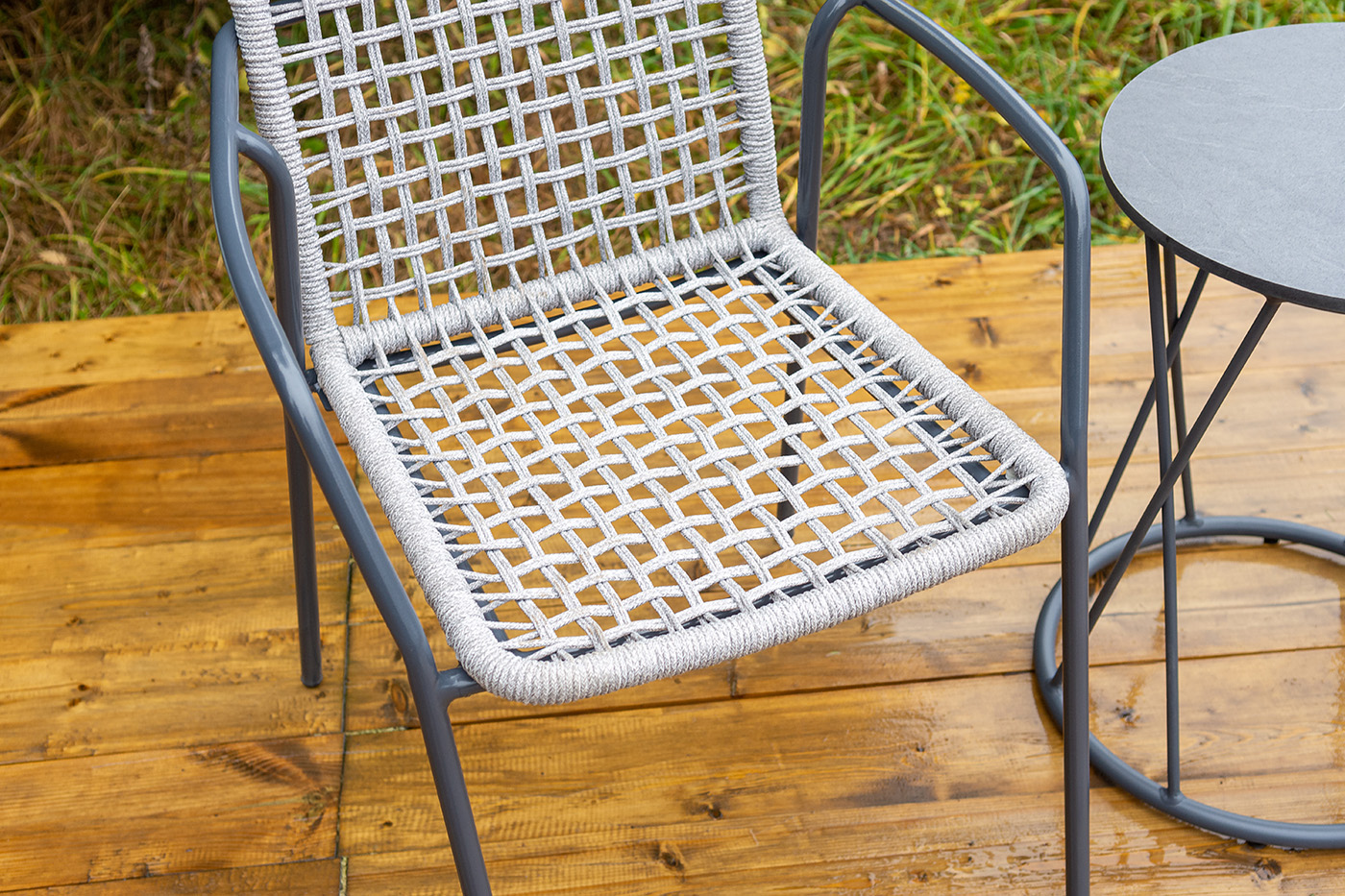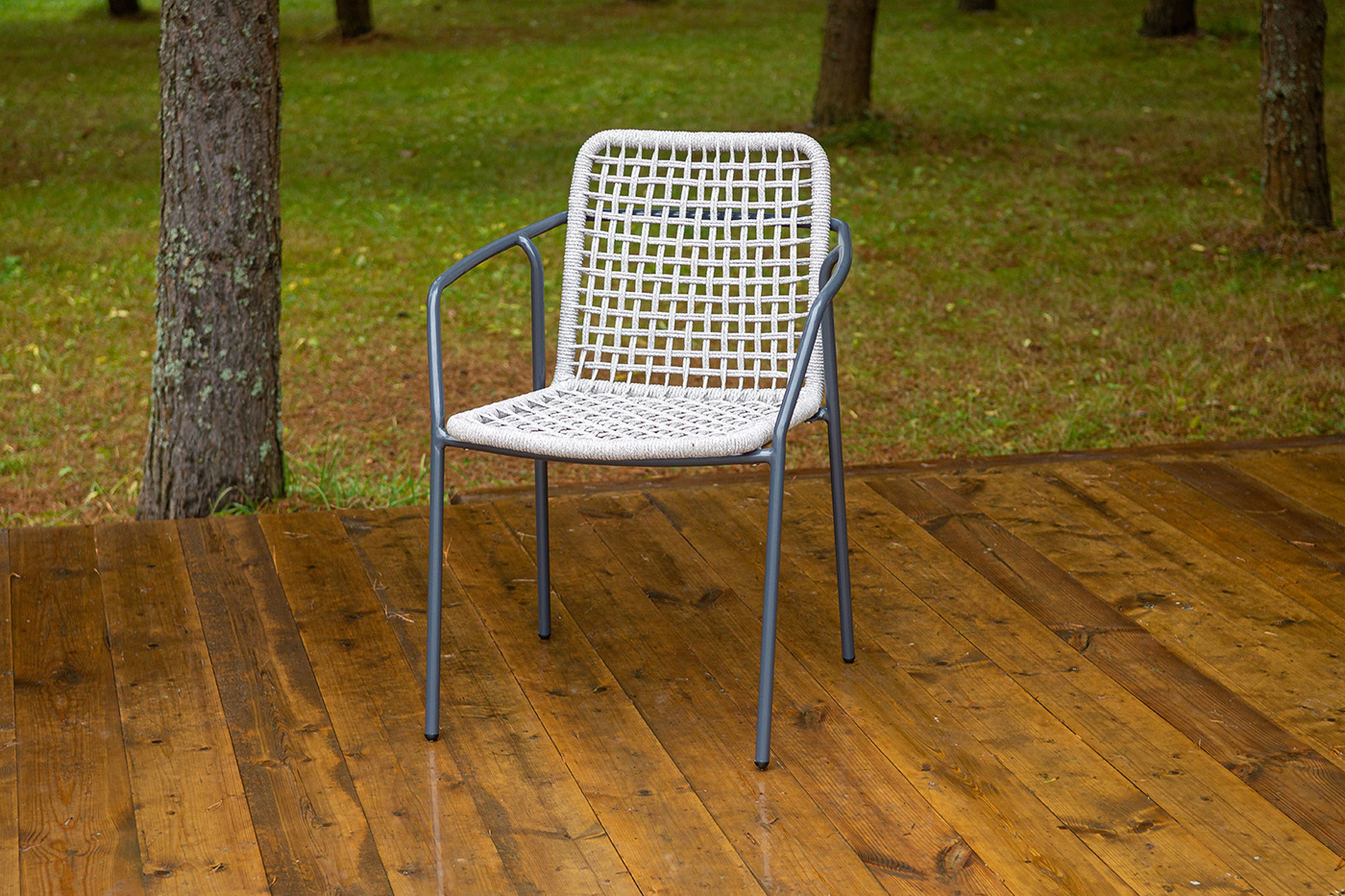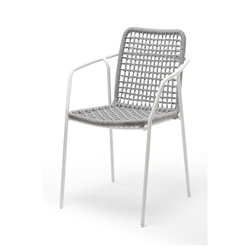 "Тунис" стул плетеный из роупа, каркас алюминий темно-серый (RAL7024), роуп светло-серый