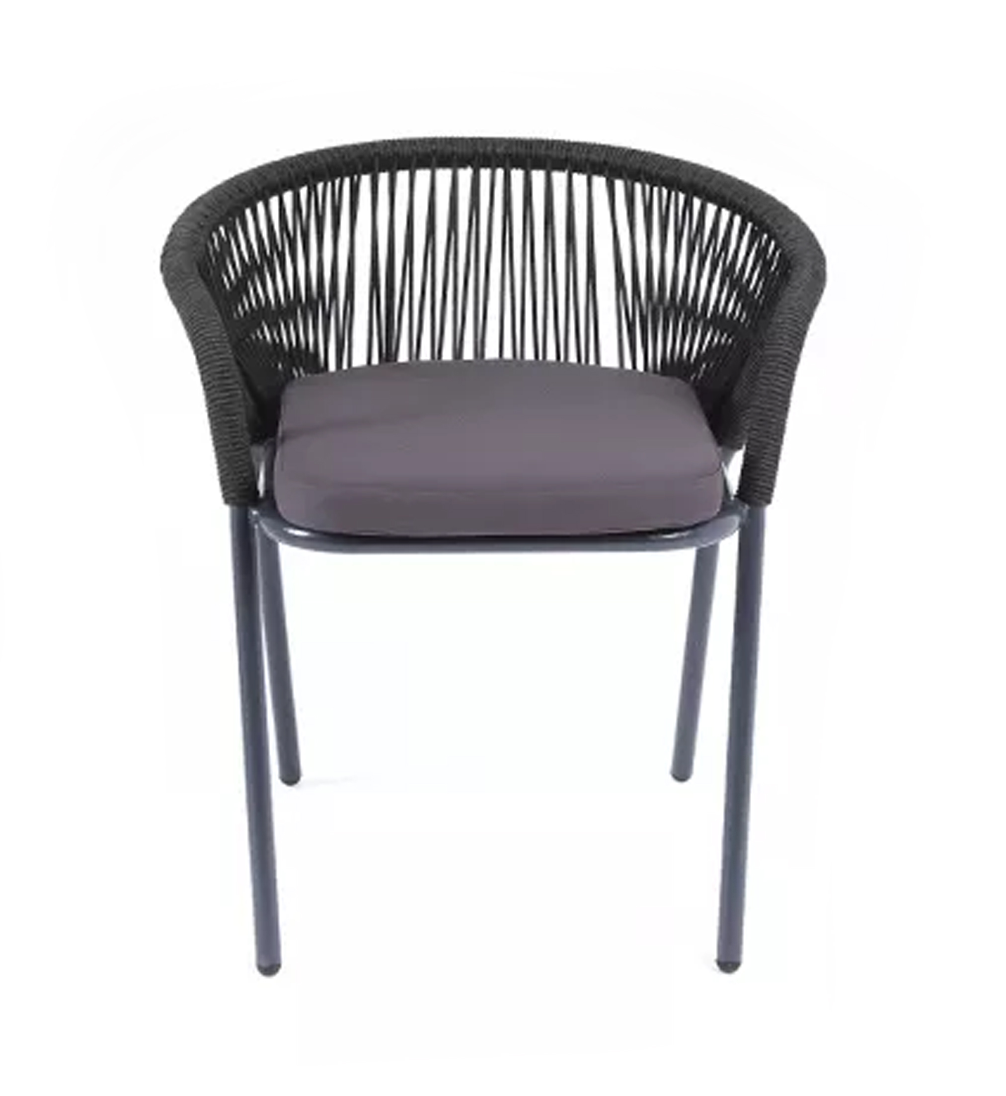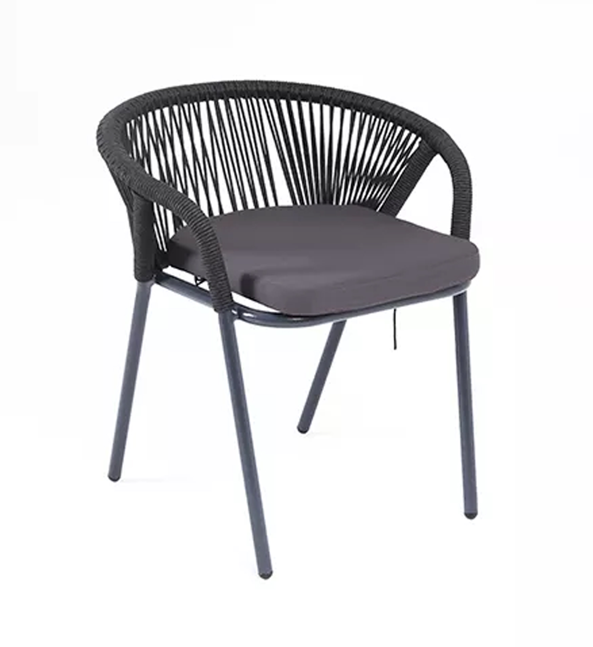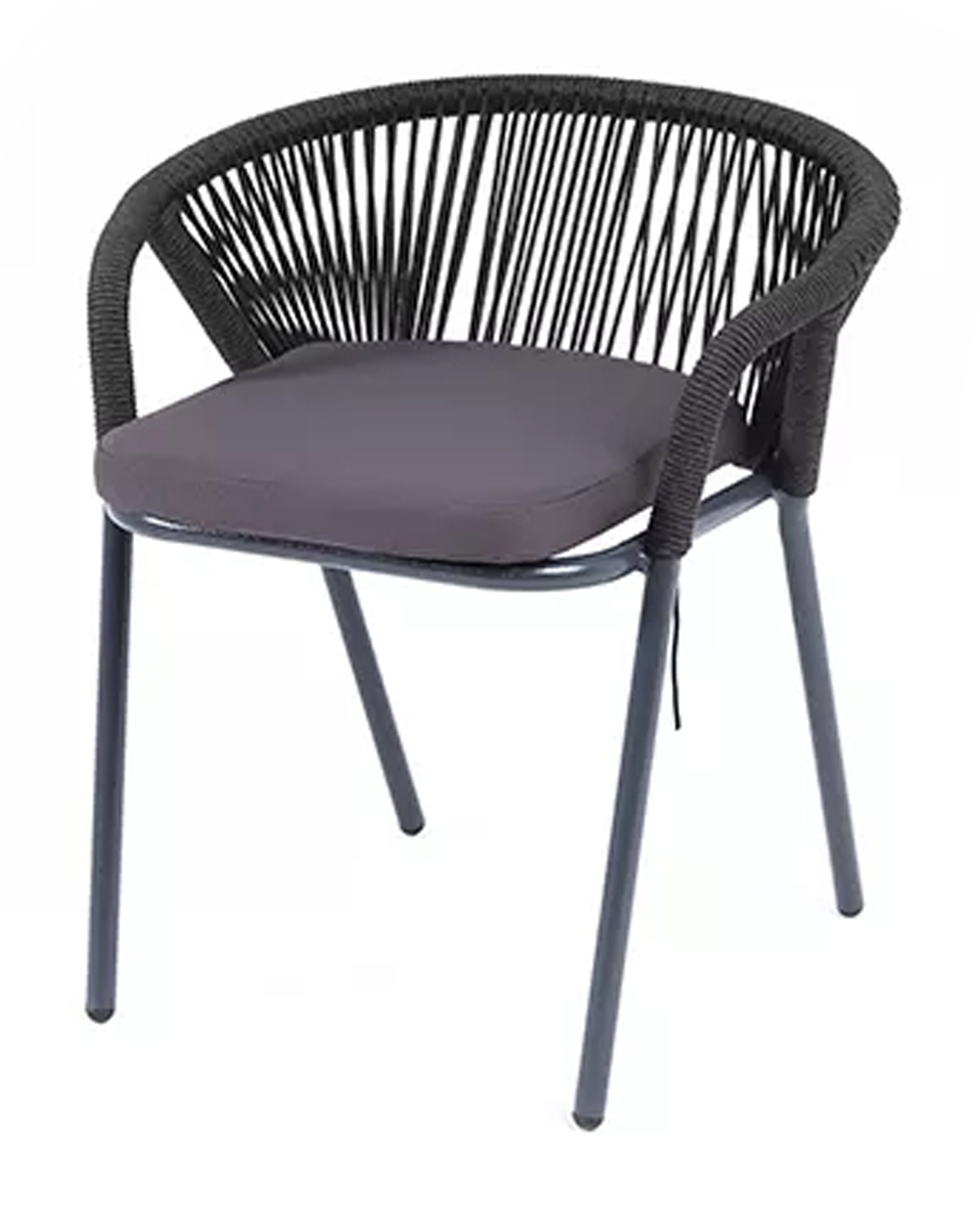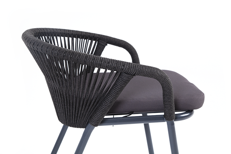 "Женева" стул плетеный из роупа, каркас алюминий темно-серый (RAL7024) шагрень, роуп темно-серый круглый, ткань темно-серая