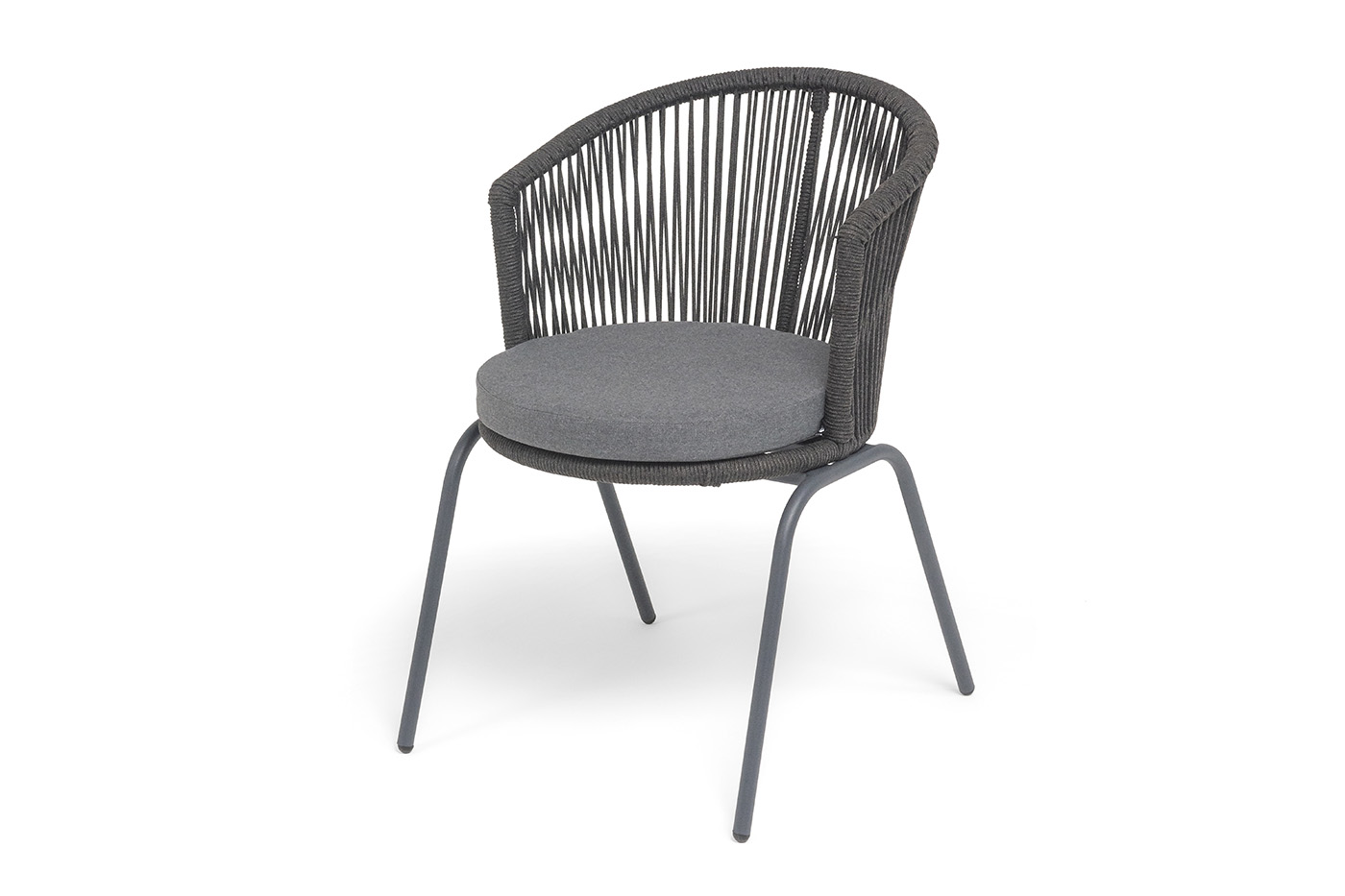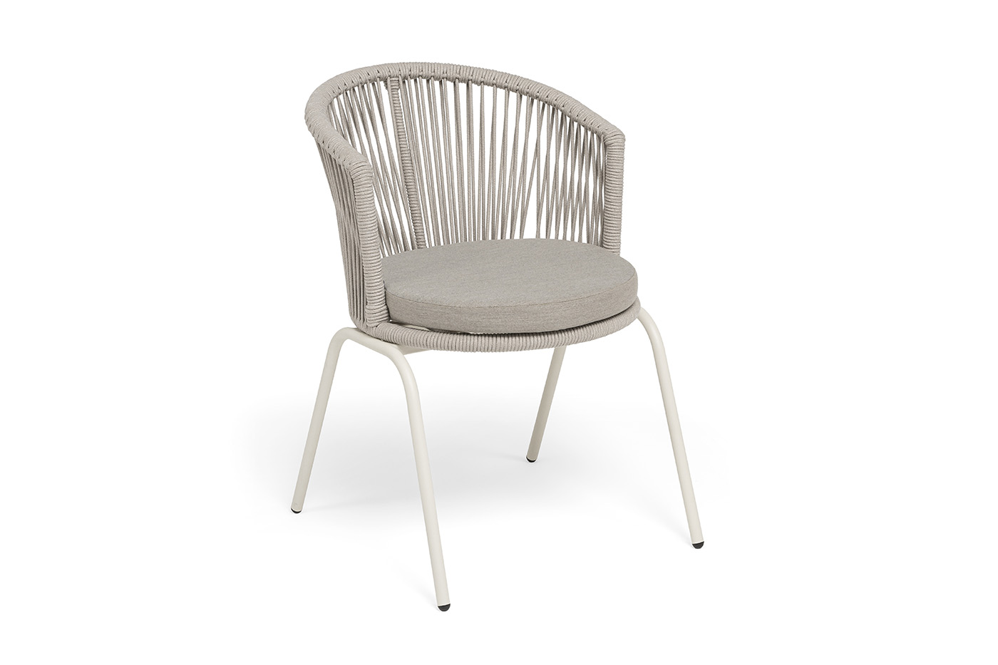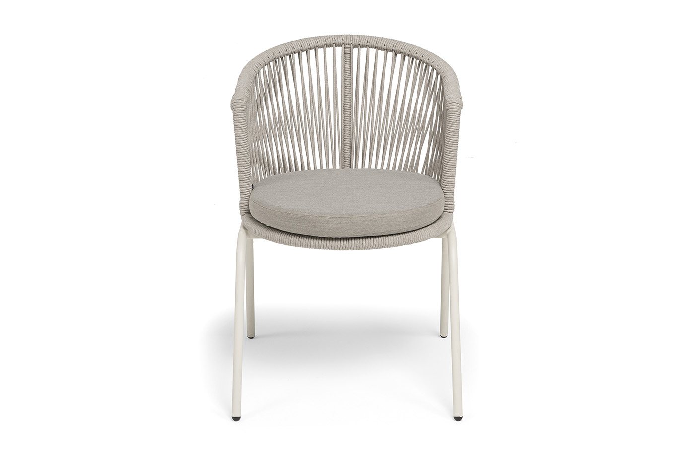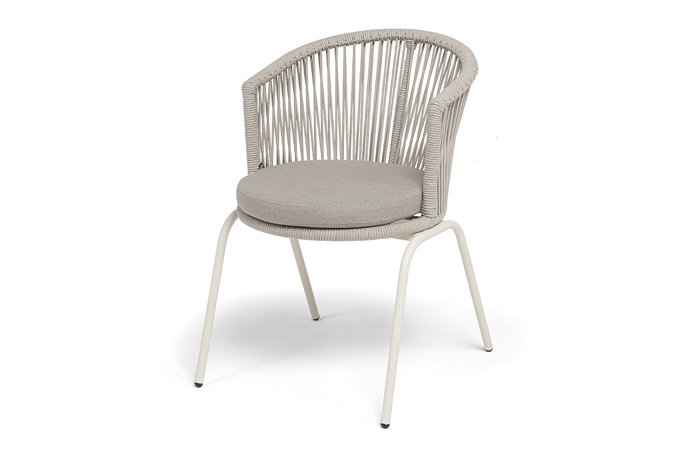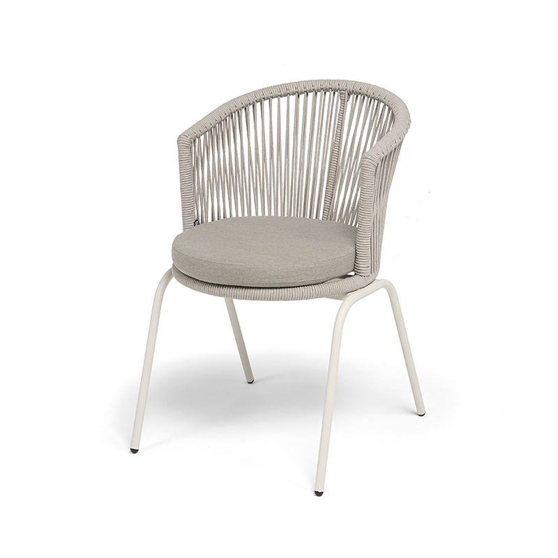 "Люксембург" стул плетеный из роупа, каркас из стали (RAL1013) муар, роуп бежевый круглый, ткань бежевая 15052