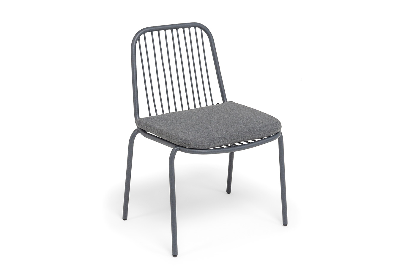 "Кастелло" стул плетеный из роупа, каркас из стали темно-серый (RAL7024) муар, ткань темно-серая 027