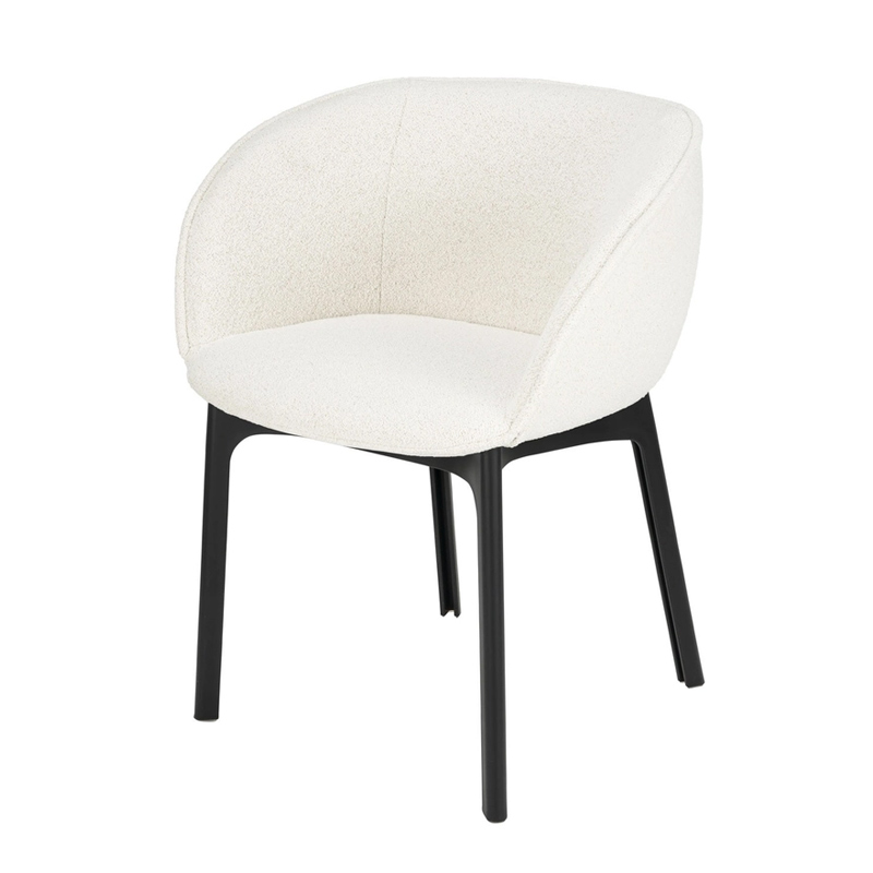 Charla сочетает в себе элегантность и экологичность благодаря ножкам, изготовленным из переработанного пластика. Каркас выполнен в черном цвете с обивкой из букле или специальной меланжевой ткани для контрактного рынка.