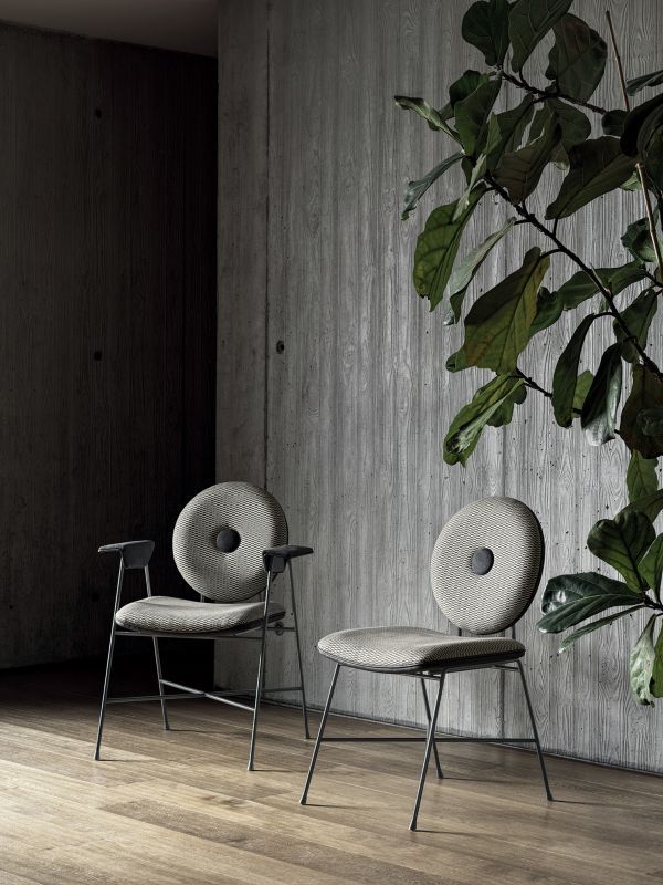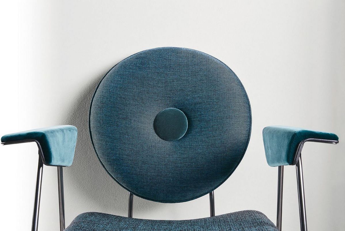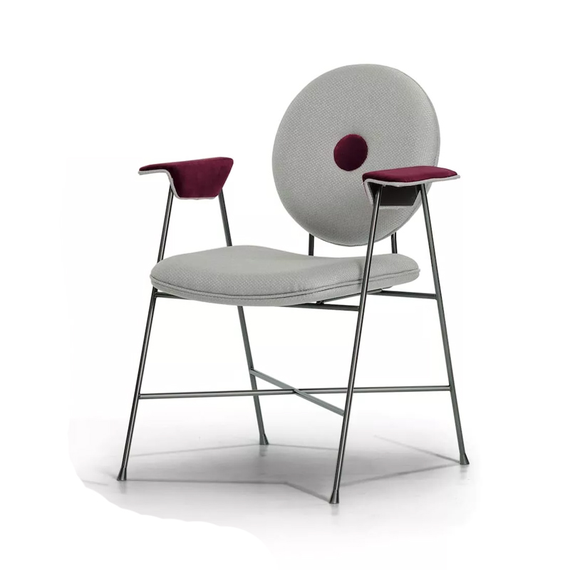 Запросить индивидуальное предложениеСтул с подлокотниками с ножками из лакированной стали, в обивке из кожи, ткани, бархата или нубука на выбор. Ткань для пуговицы, задней части спинки и нижней части сидения также можно выбрать.