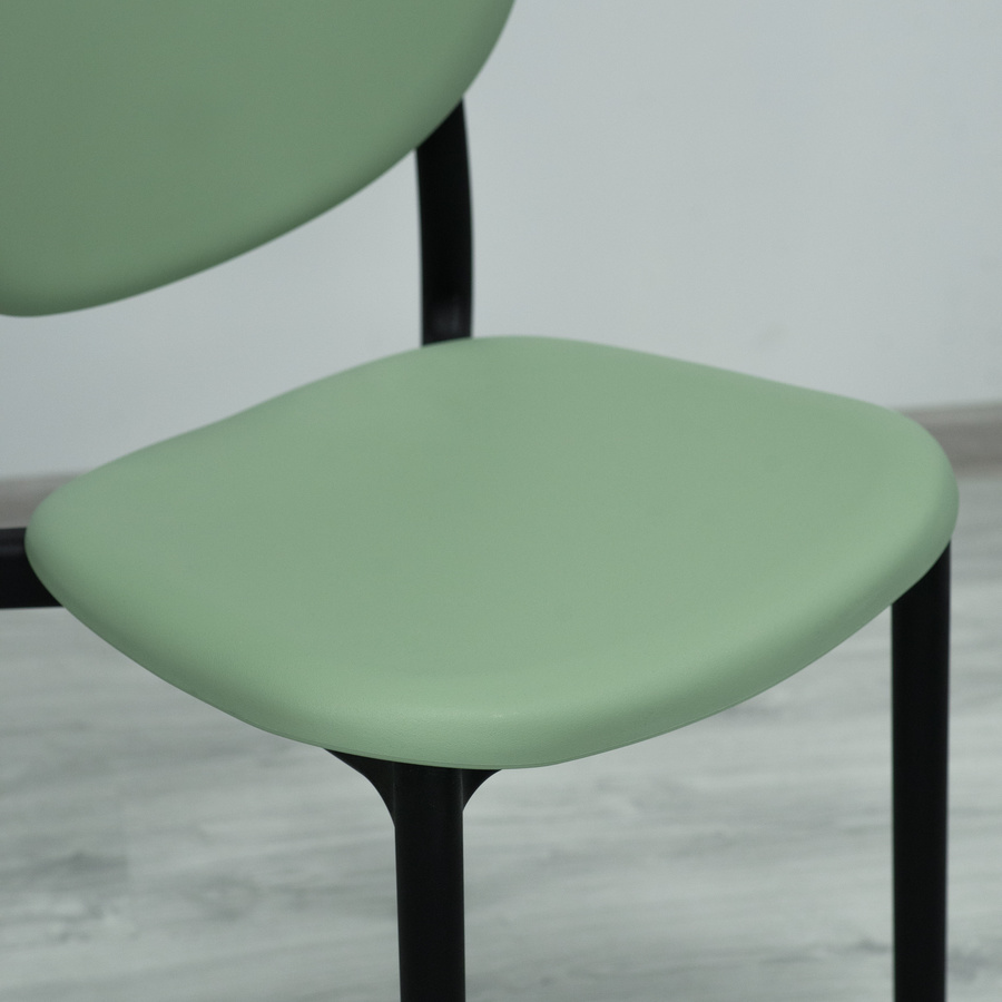 Благодаря округлой форме и объёмному силуэту, стул визуально воспринимается как мягкий и воздушный. Такой дизайн не только делает интерьер более лёгким, но и визуально добавляет уюта.