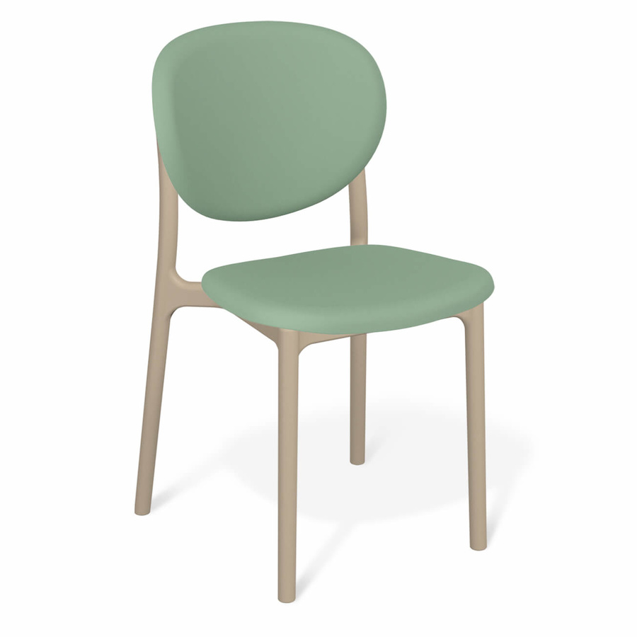 Благодаря округлой форме и объёмному силуэту, стул визуально воспринимается как мягкий и воздушный. Такой дизайн не только делает интерьер более лёгким, но и визуально добавляет уюта.