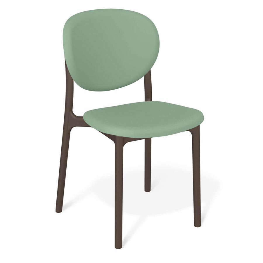 Благодаря округлой форме и объёмному силуэту, стул визуально воспринимается как мягкий и воздушный. Такой дизайн не только делает интерьер более лёгким, но и визуально добавляет уюта.