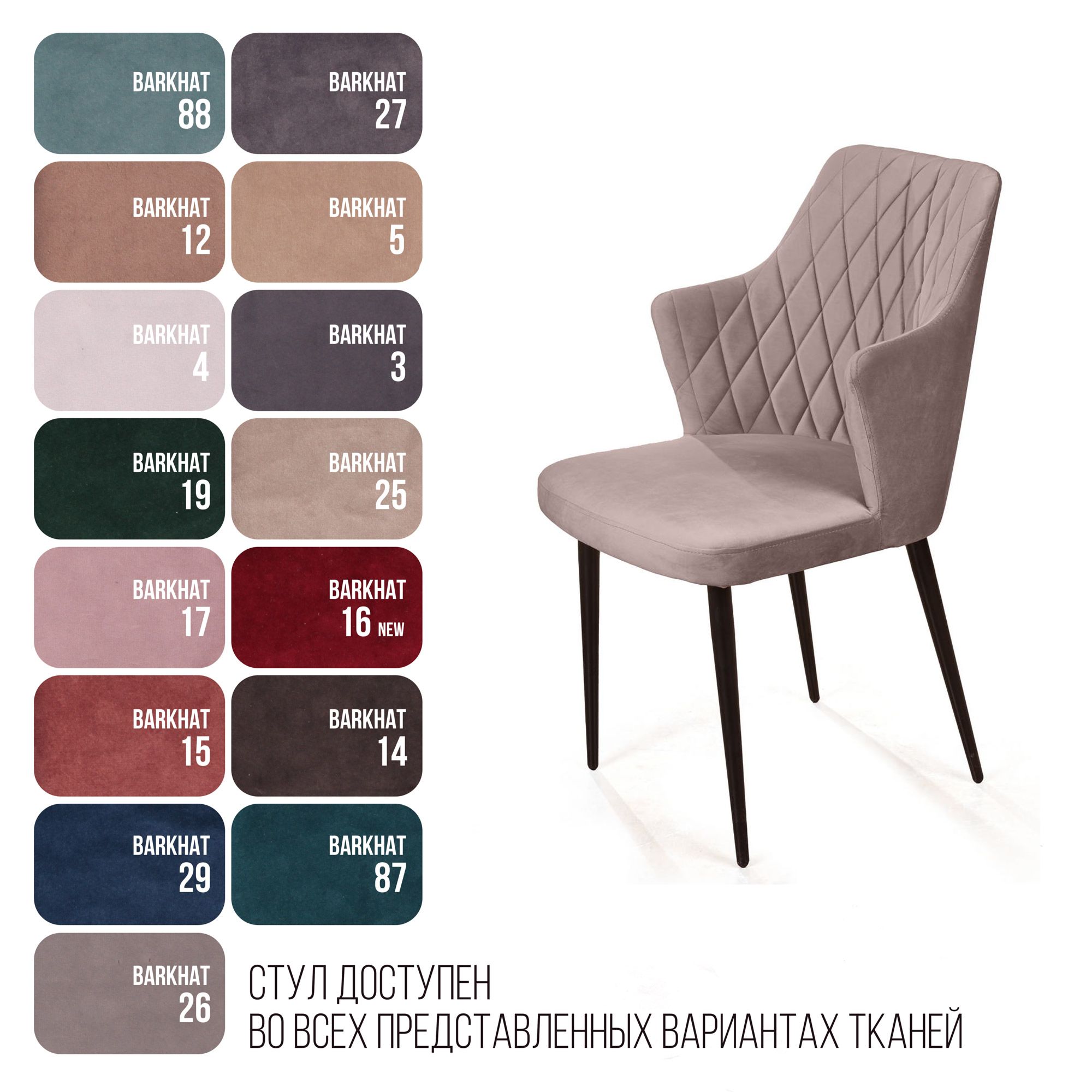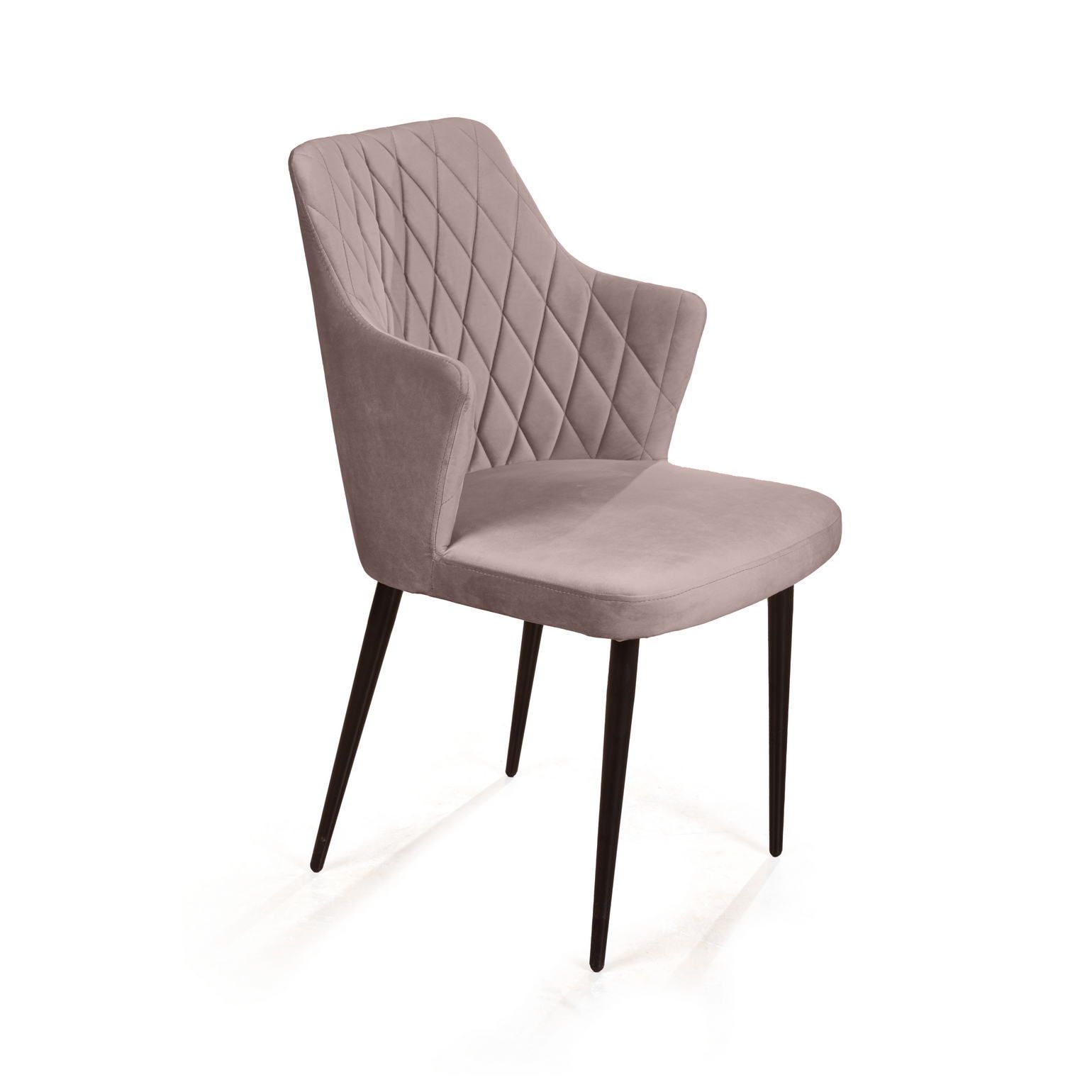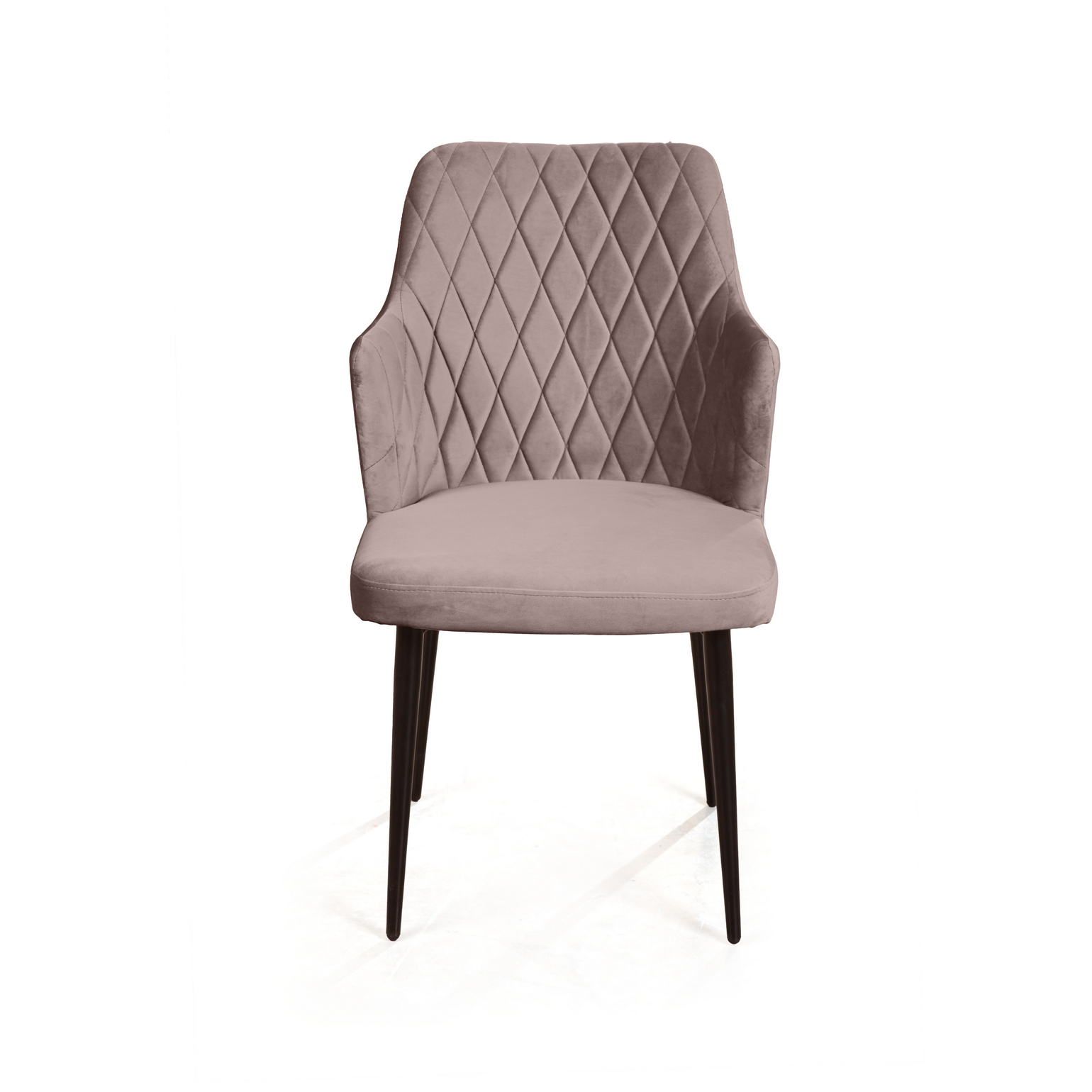 Стул с подлокотниками Hunt ромб, бархат пепельно-бежевый 25 / чёрный конус