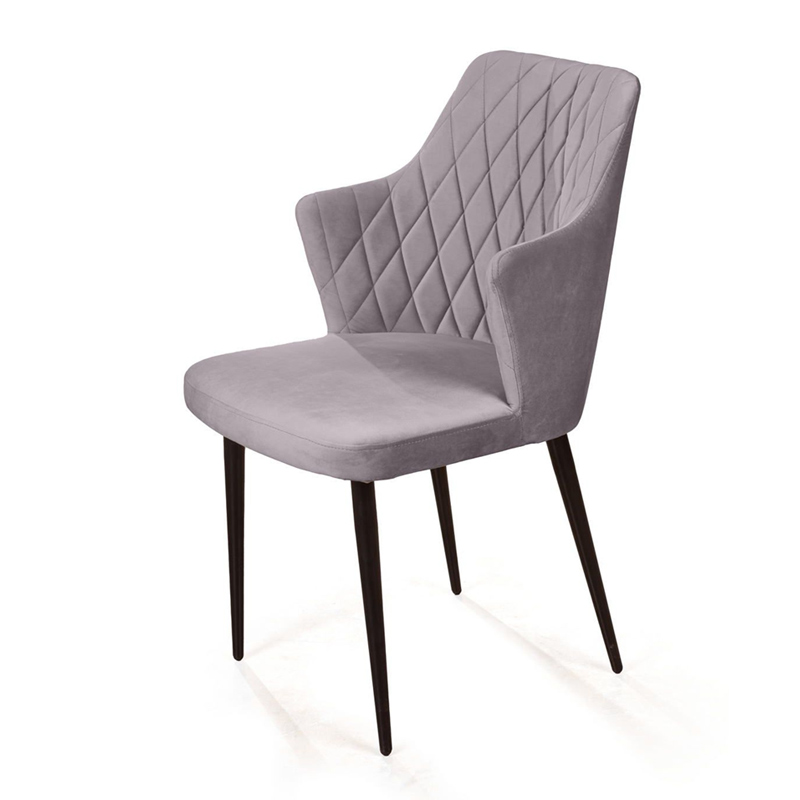 Стул с подлокотниками Hunt ромб, бархат светло-серый 26 / чёрный конус
