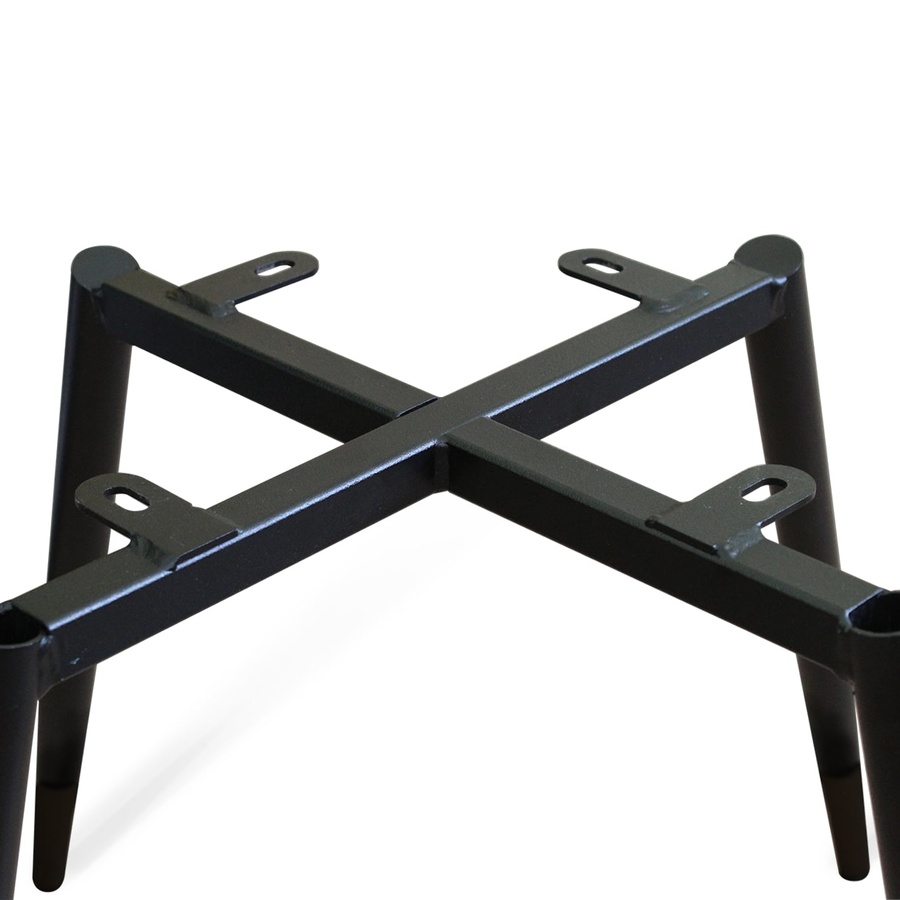 Ножки каркаса выполнены из металлической трубы диаметром 25 мм. Верхняя крестовина каркаса с приваренными фланцами выполнена из квадратной трубы 20х20 мм. Каркас не разборный и окрашен порошковой краской, устойчивой к механическому воздействию. Максимальная статическая нагрузка на каркас – 200 кг.