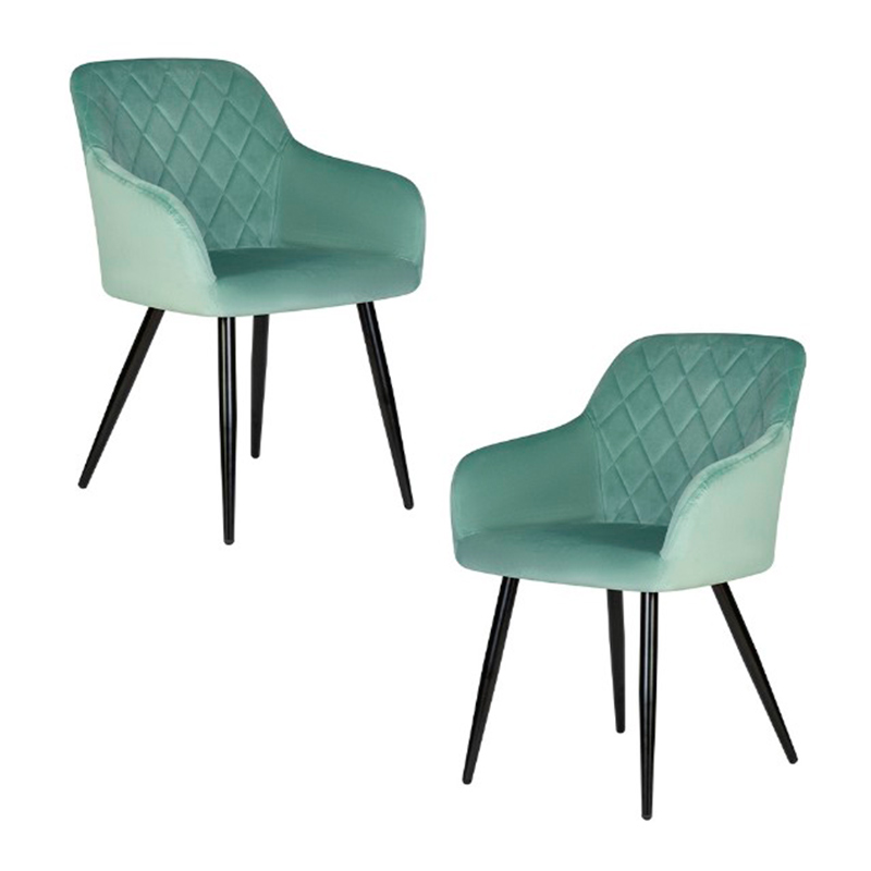 Набор 2 шт Стул обеденный DOBRIN ROBERT, черные матовые ножки, велюр V108-118 Мятный
