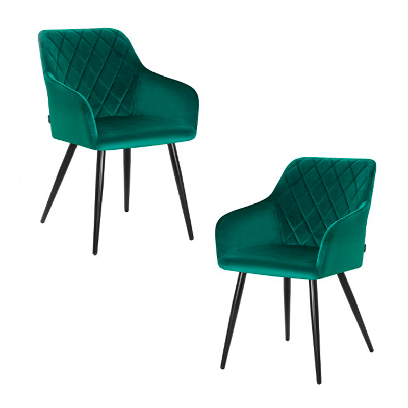 Набор 2 шт Стул обеденный DOBRIN ROBERT, черные матовые ножки, велюр V108-64 Зелёный