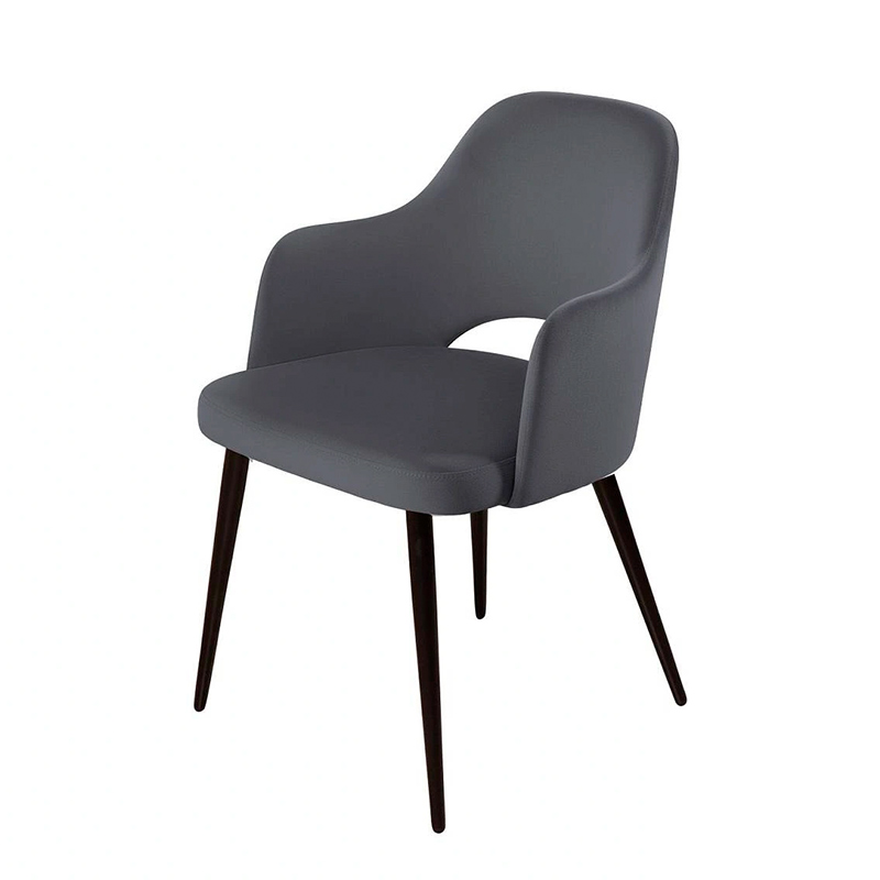 Стул William с подлокотниками, бархат серый 27/ черный конус