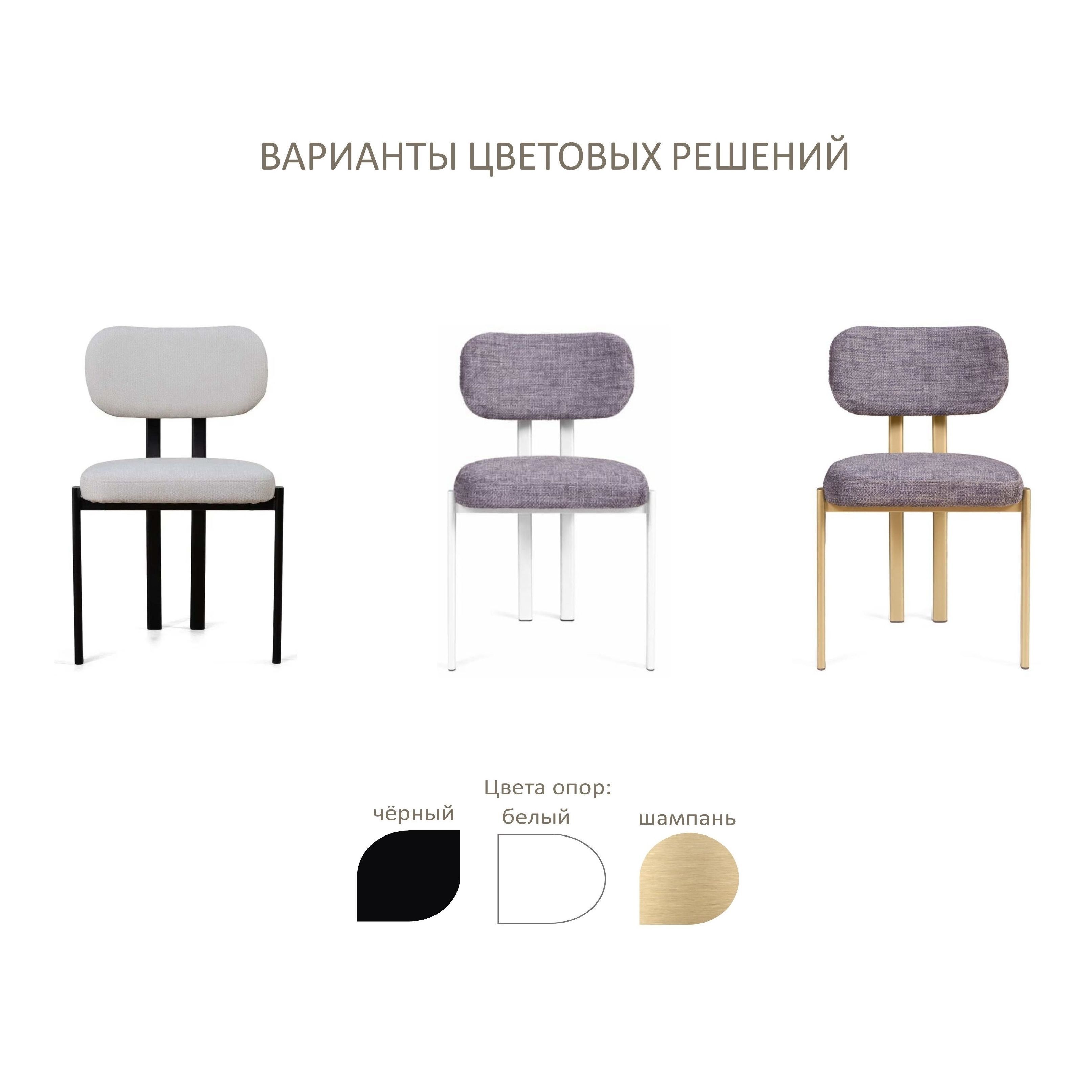 Металлические опоры обеспечивают стабильность. За счёт овального профиля и скрытых креплений стул выглядит тонко и аккуратно, оставаясь надёжным решением для ежедневного использования. На ножках предусмотрены защитные накладки: меньше шума, защита покрытия пола и аккуратное скольжение.