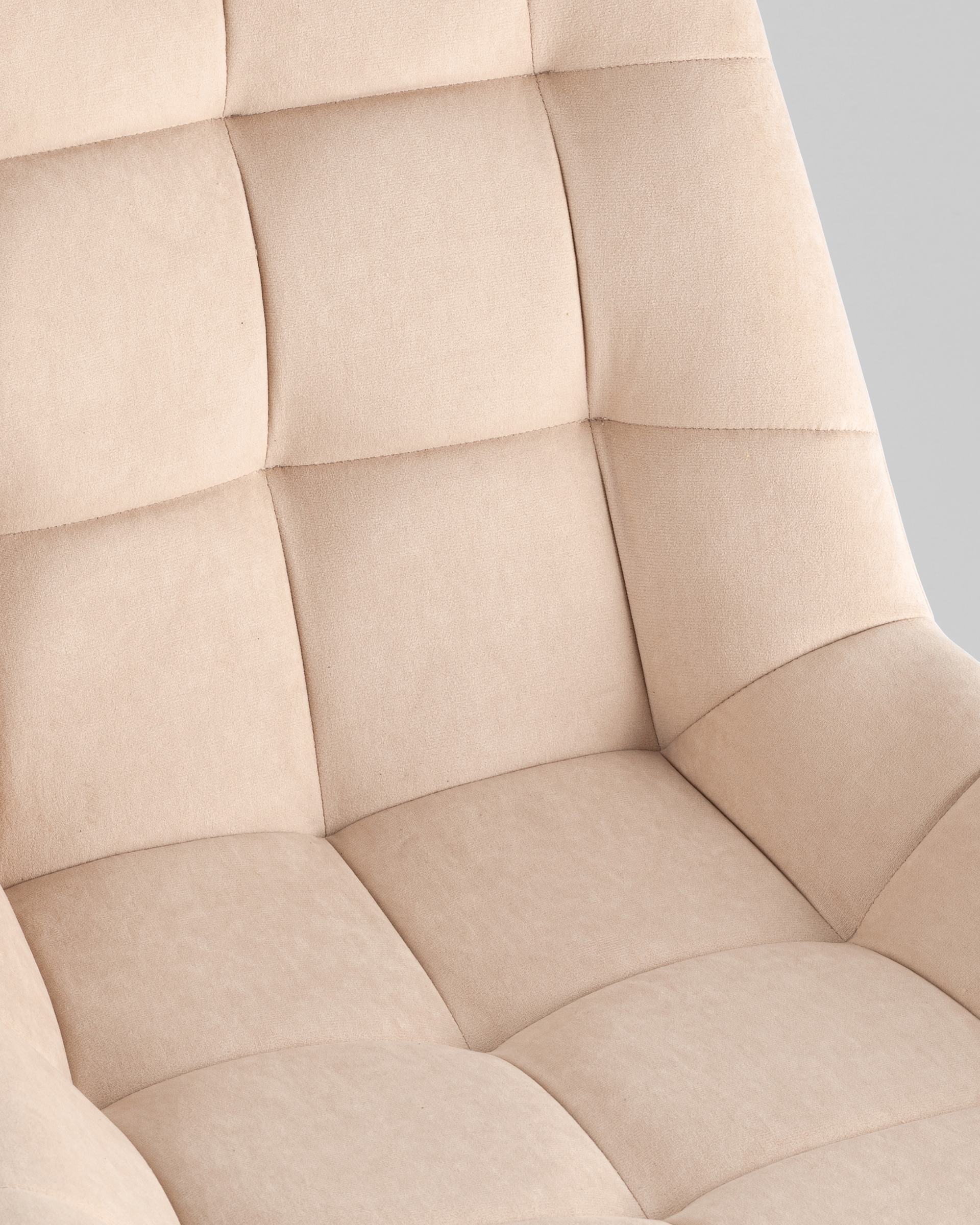 Сиденье и спинка выполнены из качественного велюра — приятного на ощупь материала, устойчивого к износу и выцветанию. Он легко чистится сухим способом — с помощью пылесоса или мягкой щетки.