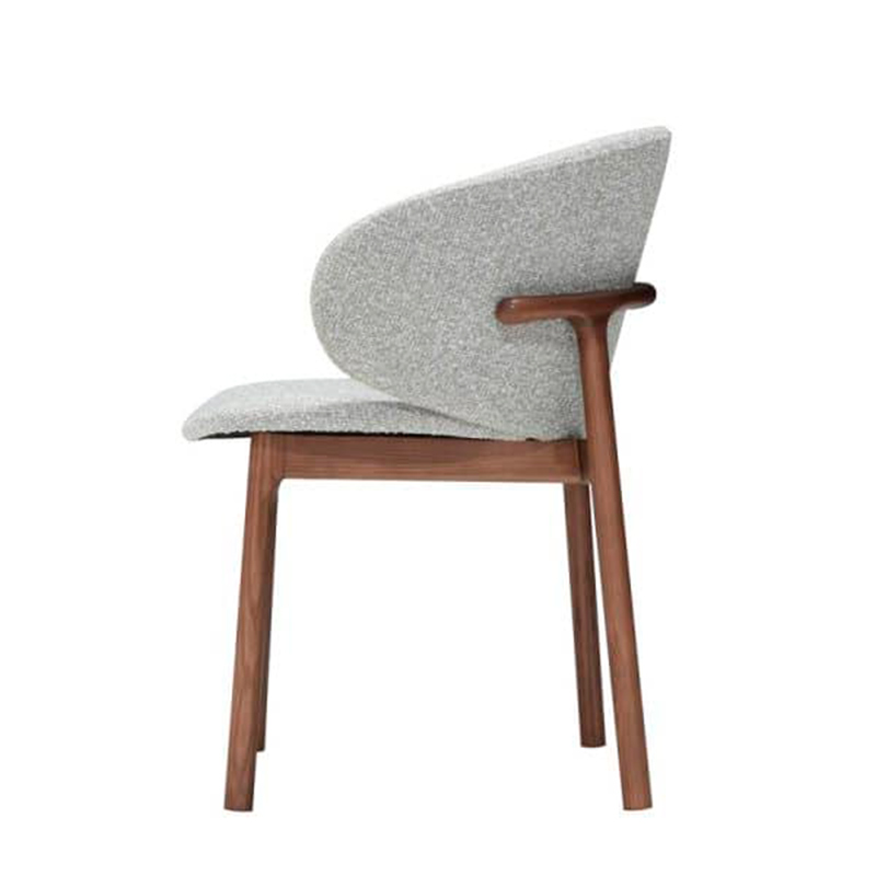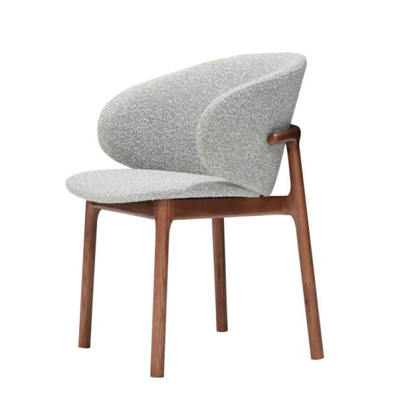 Эргономичный стул от бренда Mod Interiors - идеальный вариант для столовой в современном стиле. Каркас стула выполнен из массива ясеня, тонированного в цвет орех. Спинка и сиденье изготовлены из многослойной фанеры. Стул обит тканью букле в серых тонах. Наполнитель спинки и сидения - пенополиуретан высокой плотности. Стул - универсальный, можно использовать в гостиной, на кухне, в кабинете. Удобная эргономичная посадка, спинка с боковой поддержкой спины.