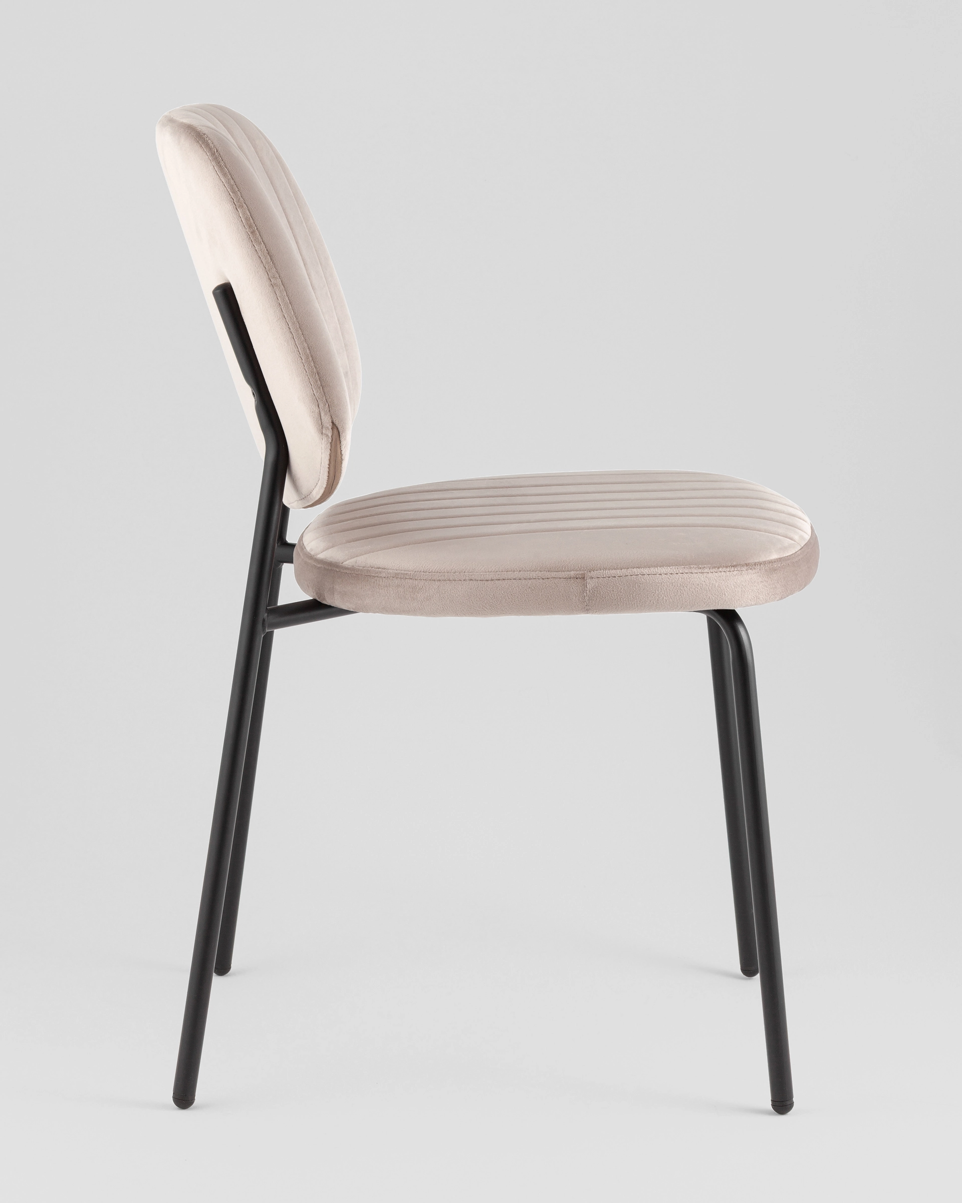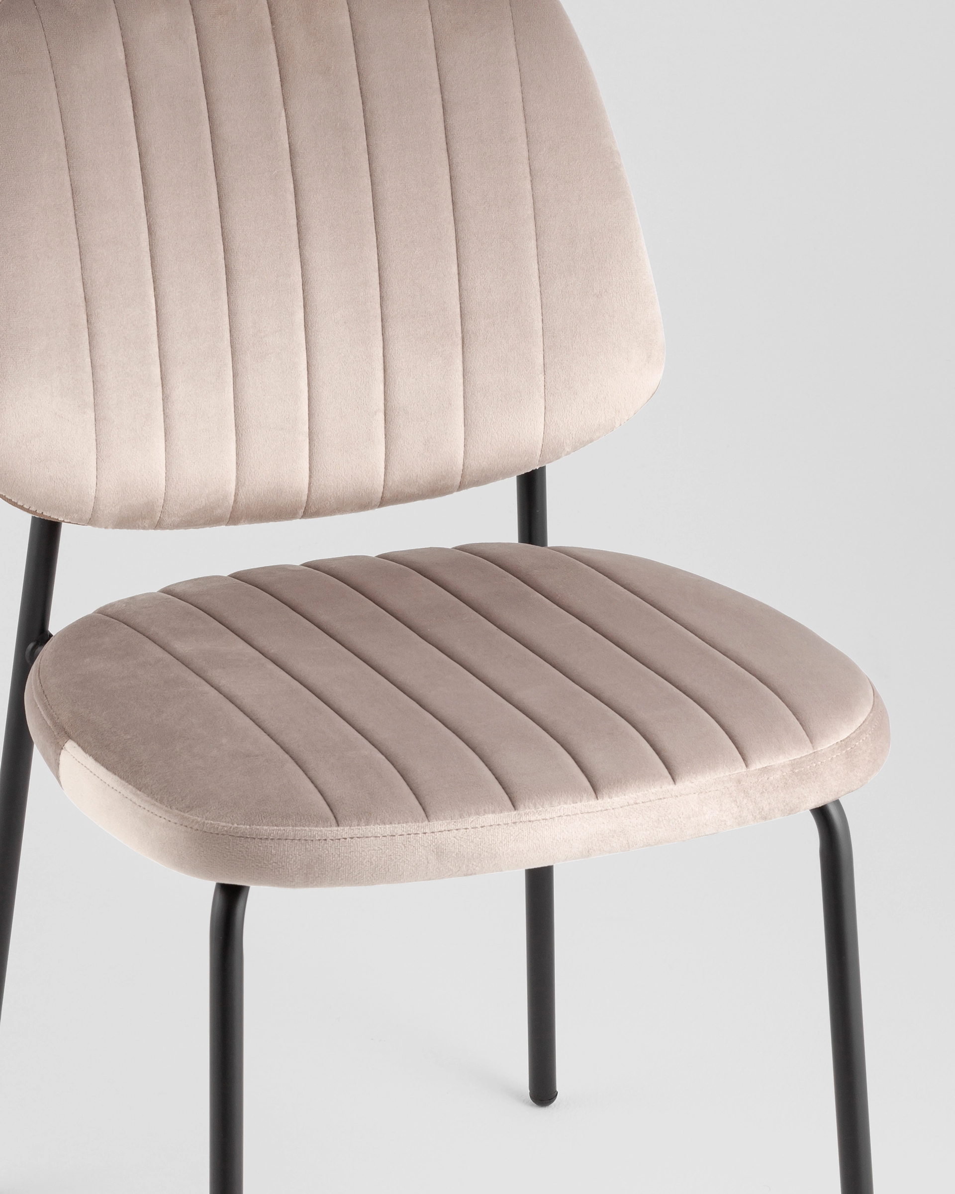 Обивка выполнена из качественного велюра — приятного на ощупь, износостойкого материала с высокой цветоустойчивостью. Он легко чистится сухим способом (пылесосом или мягкой щеткой) и обладает эффектом «антикоготь», что делает стул особенно практичным в домах с животными.
