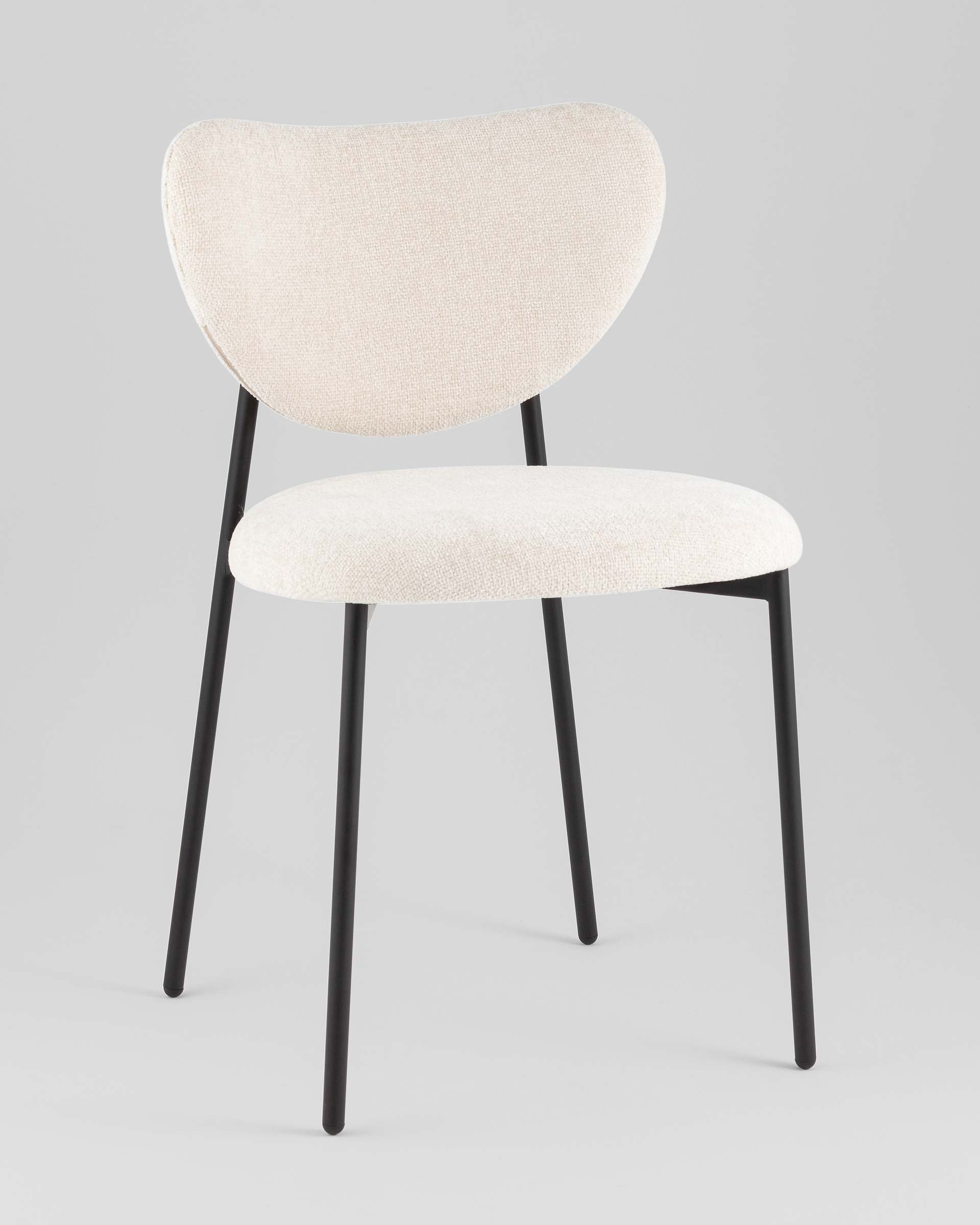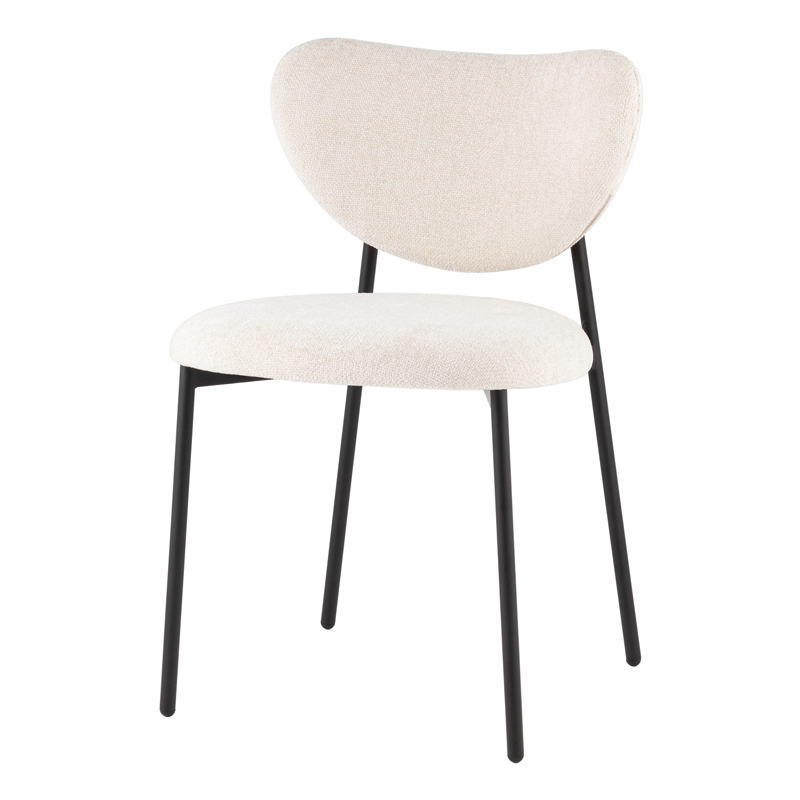 Стул Rina сочетает в себе комфорт и актуальный дизайн. Мягкая округлая спинка обеспечивает удобную поддержку спины, создавая визуально легкий и современный образ. Кремовый оттенок обивки придаёт интерьеру нежность, а тонкие лаконичные ножки в черном цвете добавляют контраст и устойчивость.