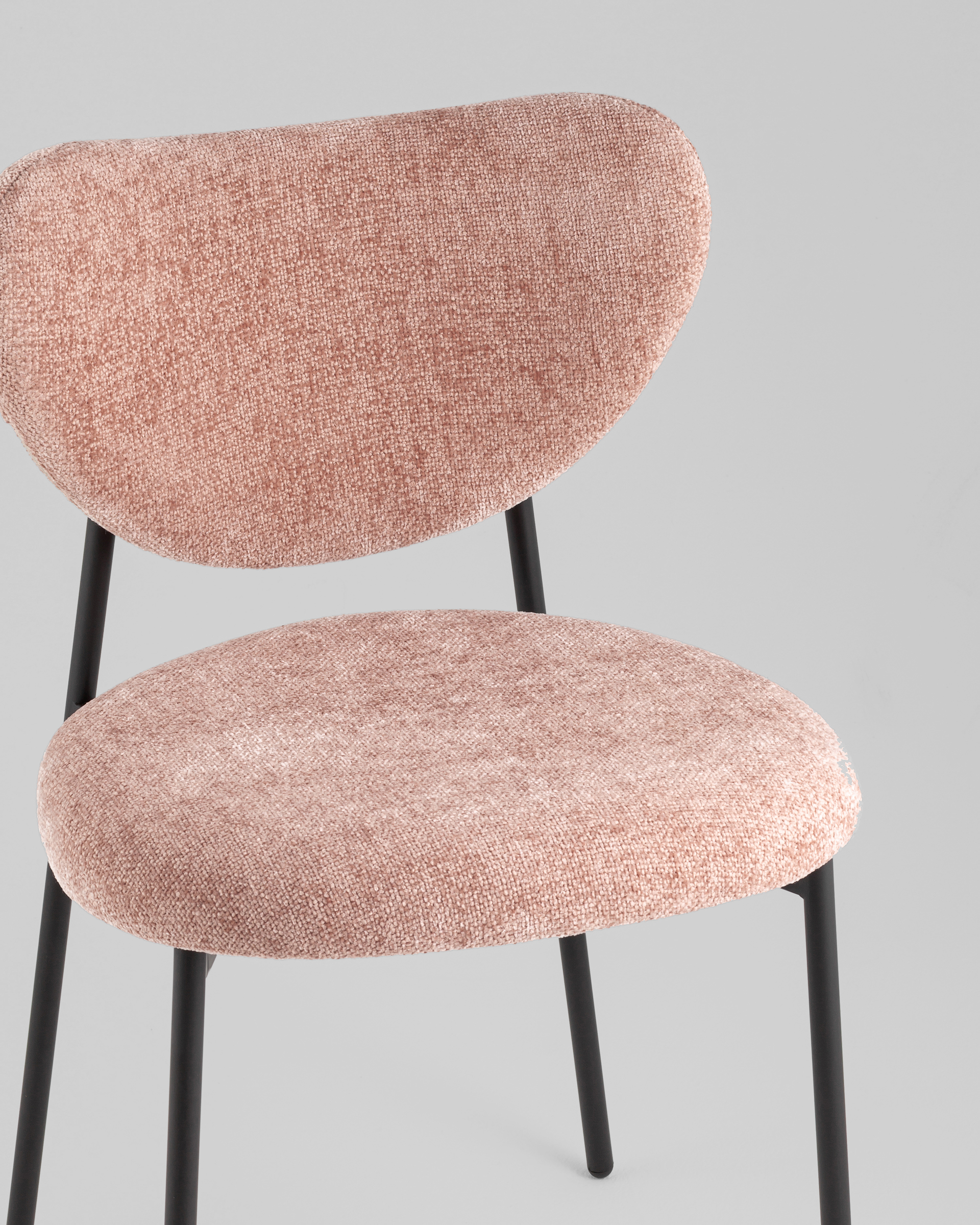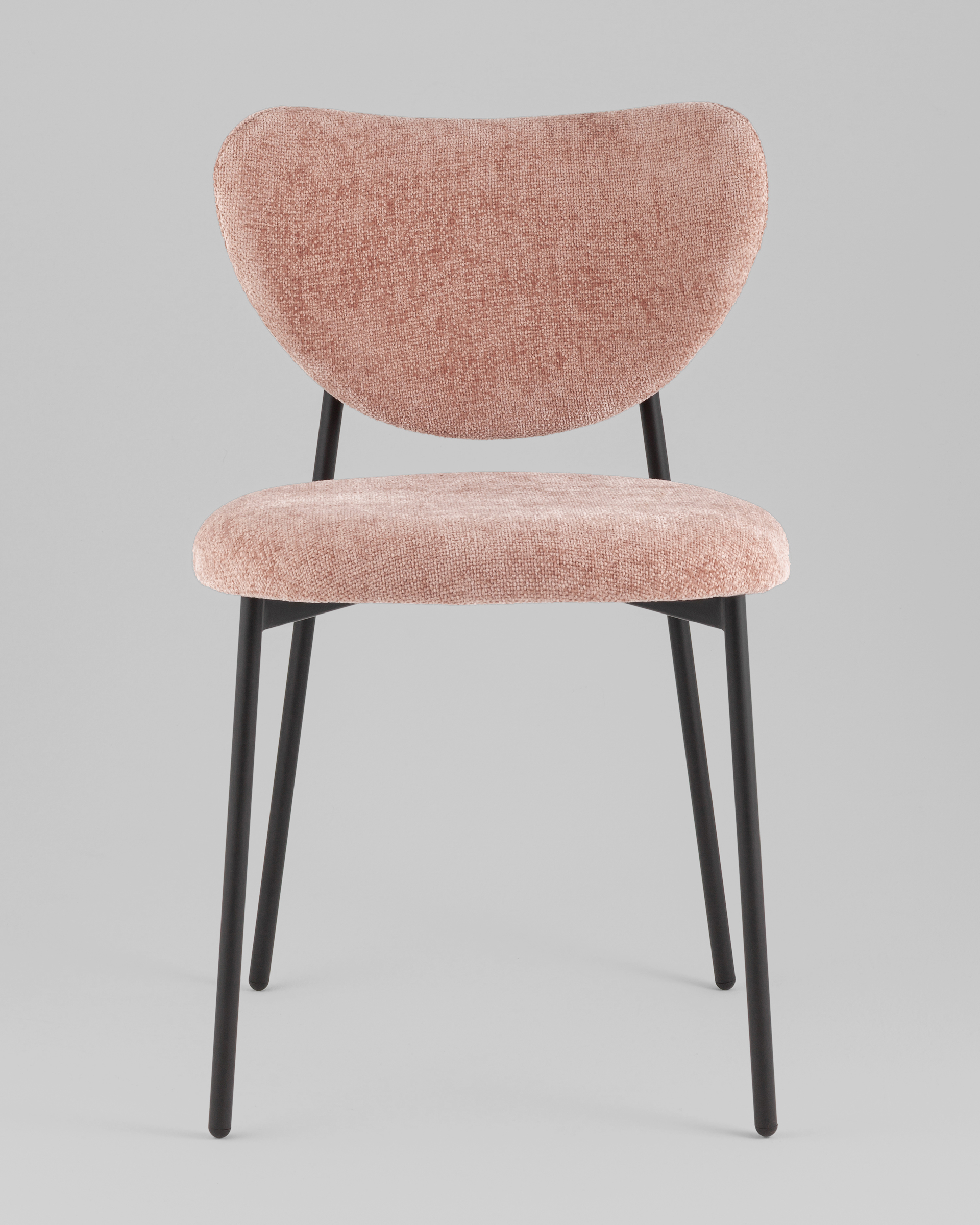 Стул Rina сочетает в себе комфорт и актуальный дизайн. Мягкая округлая спинка обеспечивает удобную поддержку спины, создавая визуально легкий и современный образ. Пыльно-розовый оттенок обивки придаёт интерьеру нежность, а тонкие лаконичные ножки в черном цвете добавляют контраст и устойчивость.