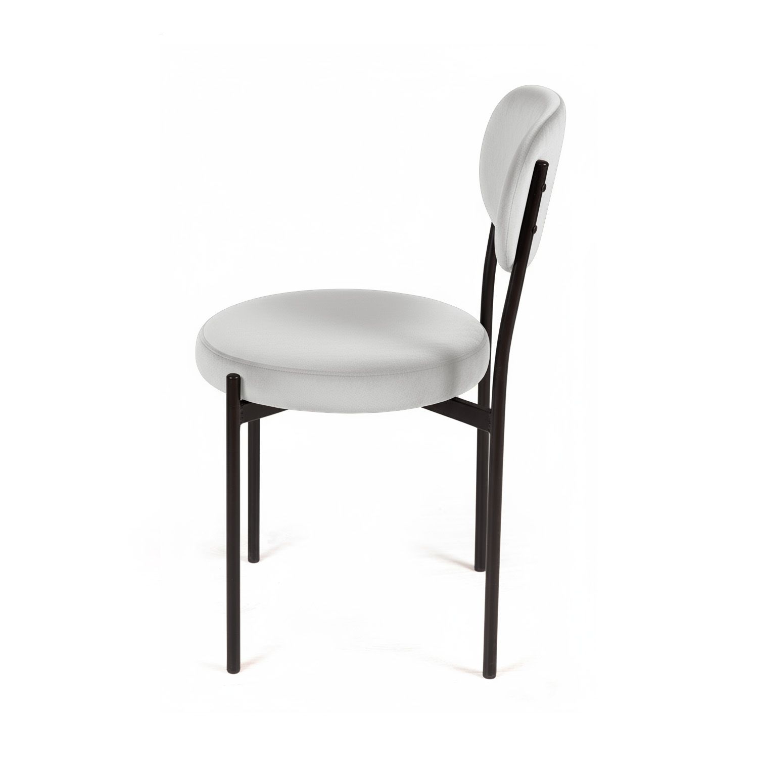 Металлические опоры черного матового цвета. На опорах предусмотрены защитные пластиковые накладки, которые придают стулу дополнительную устойчивость и защищают пол от царапин.