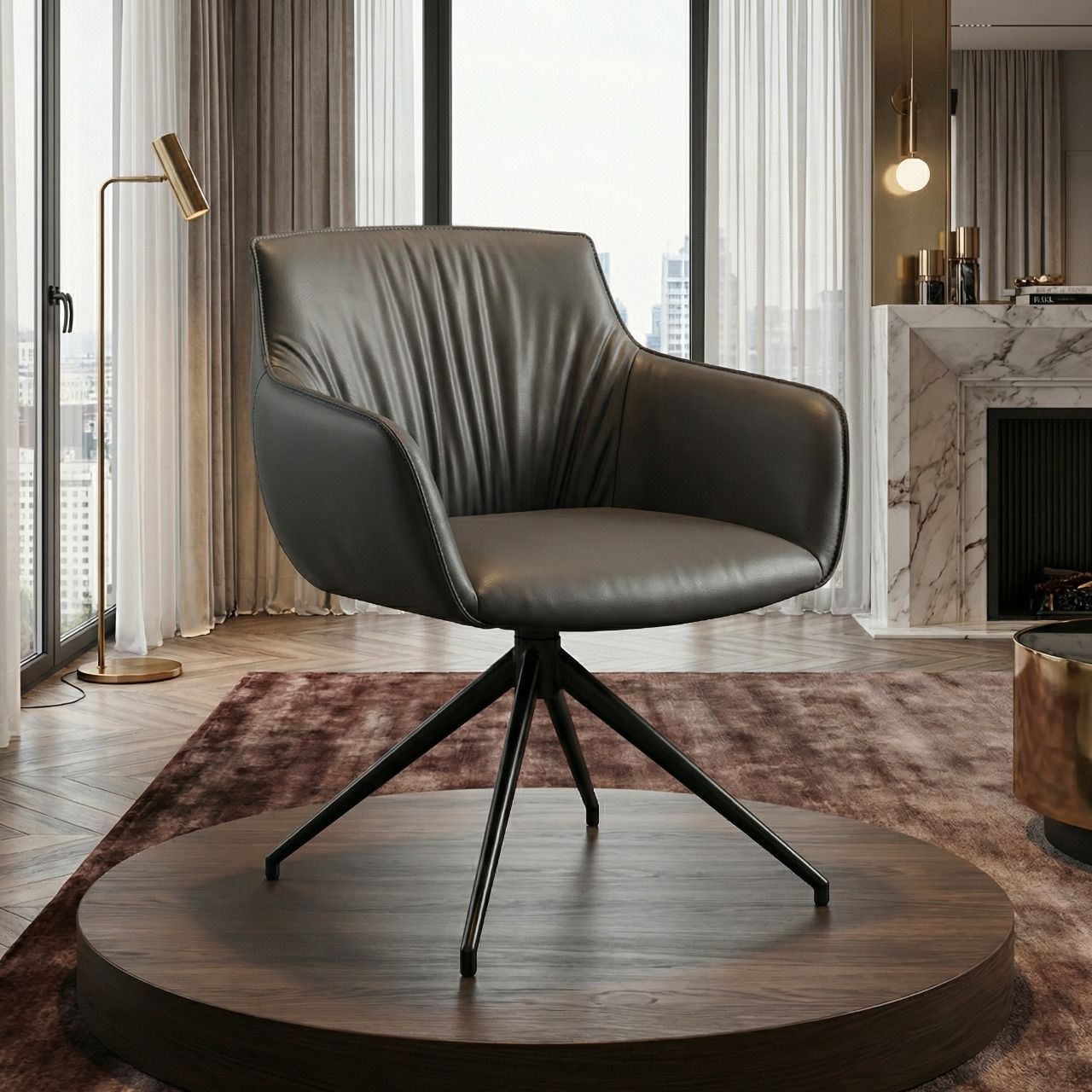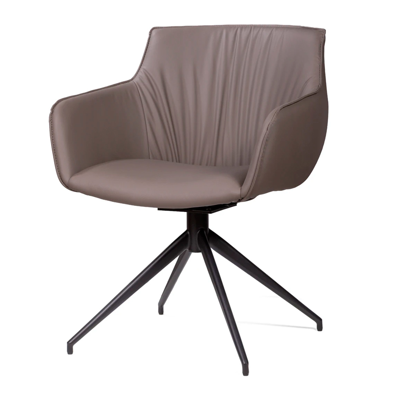 Функциональный поворотный механизм 360 градусов обеспечивает мобильность без необходимости перемещать кресло. Металлические ножки с порошковым покрытием устойчивы к коррозии и механическим повреждениям. Регулируемые опоры компенсируют неровности пола и предотвращают раскачивание.