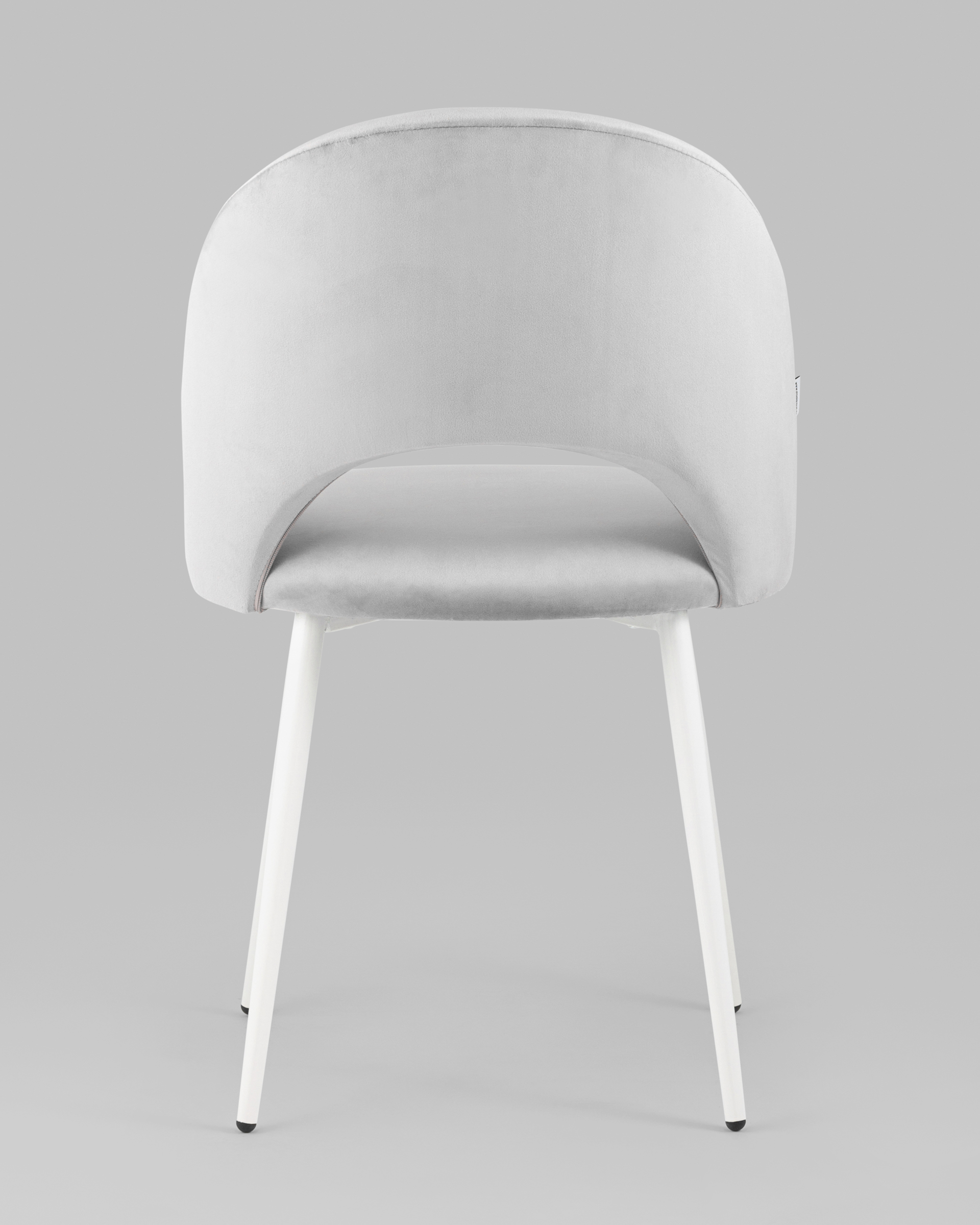 Лаконичный дизайн с полукруглой спинкой в нежной велюровой обивке придется по душе любителям комфорта и уюта. Каркас стульев металлический, ножки выполнены в белом цвете, прекрасно впишутся в любой современный дизайн интерьера.