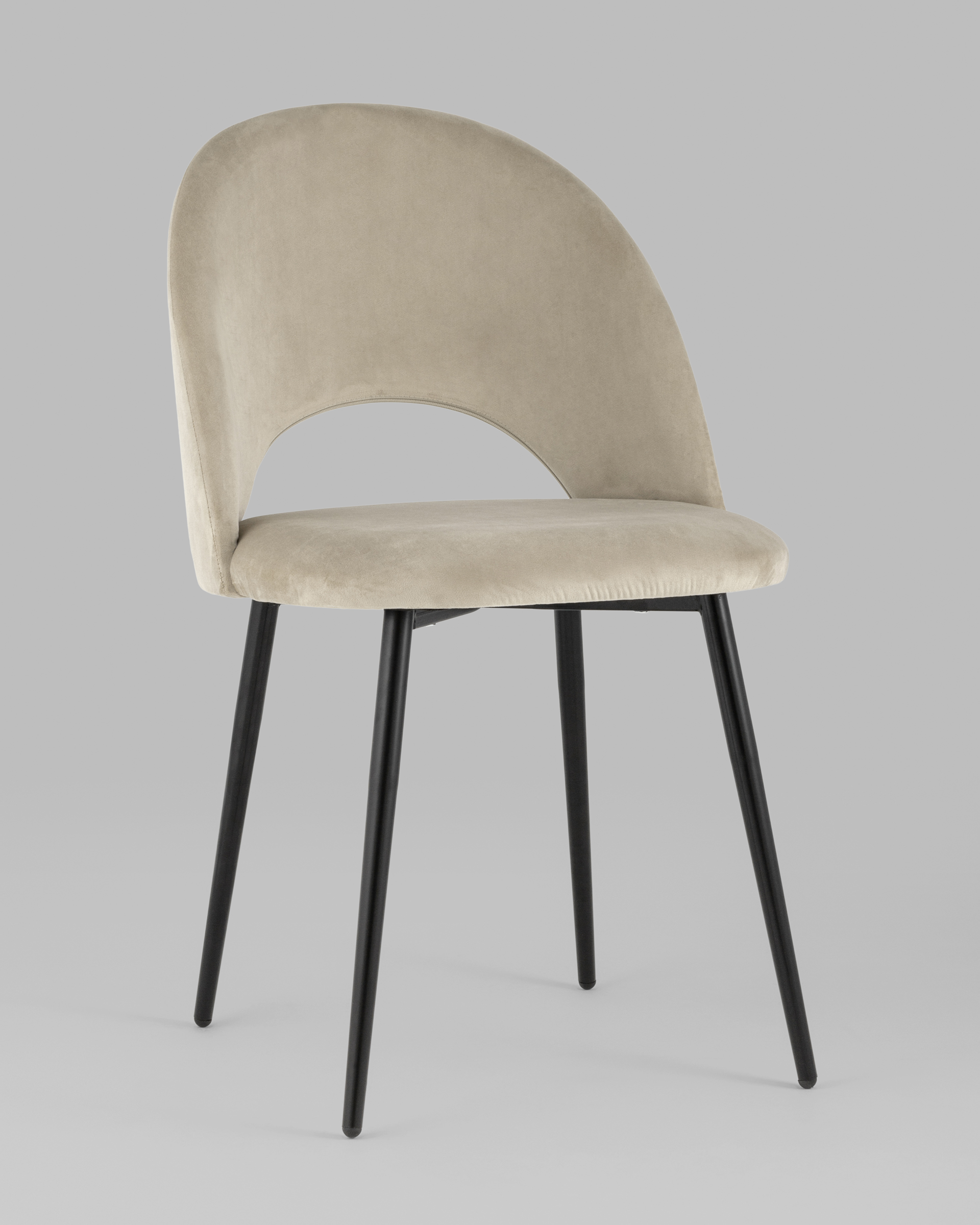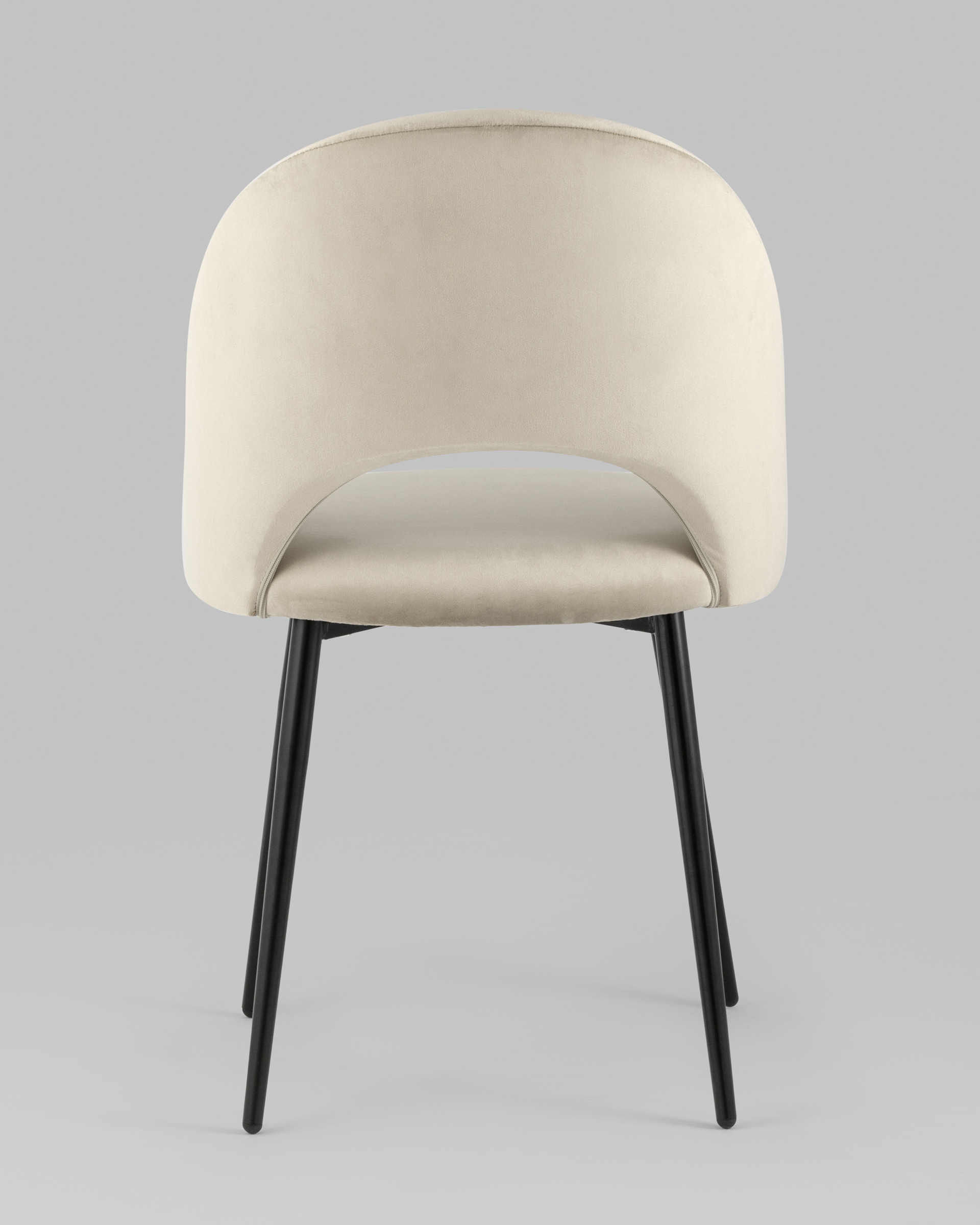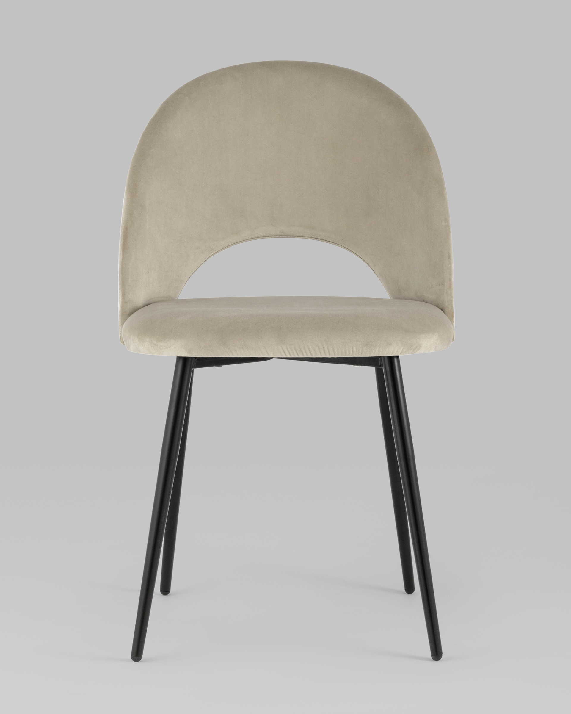 Лаконичный дизайн с полукруглой спинкой в нежной велюровой обивке придется по душе любителям комфорта и уюта. Каркас стульев металлический, ножки выполнены в черном цвете, прекрасно впишутся в любой современный дизайн интерьера.