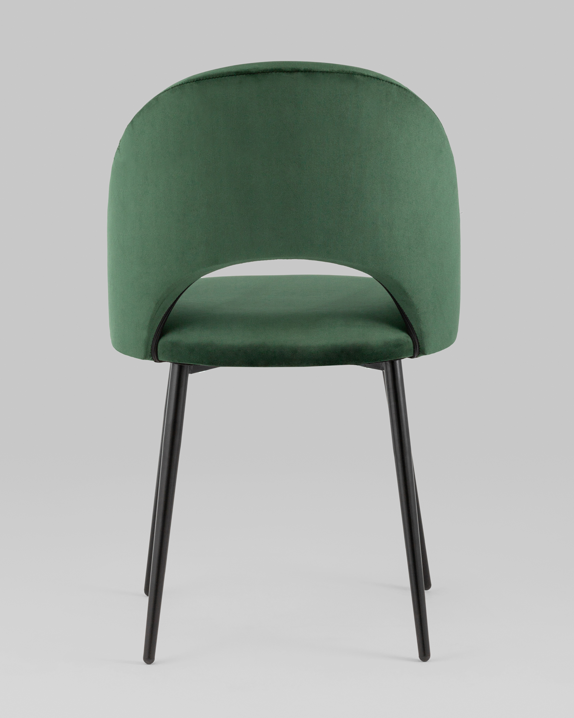 Лаконичный дизайн с полукруглой спинкой в нежной велюровой обивке придется по душе любителям комфорта и уюта. Каркас стульев металлический, ножки выполнены в черном цвете, прекрасно впишутся в любой современный дизайн интерьера.