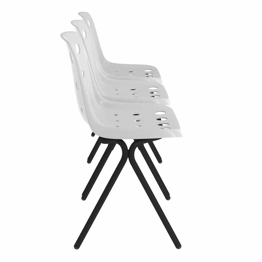 Глянцевое сидение выполнено из полипропилена с армирующими добавками и выдерживает продолжительные нагрузки. Надежный металлический каркас покрыт порошковой краской, устойчивой к механическому воздействию. Максимальная статическая нагрузка на стул 150 кг.