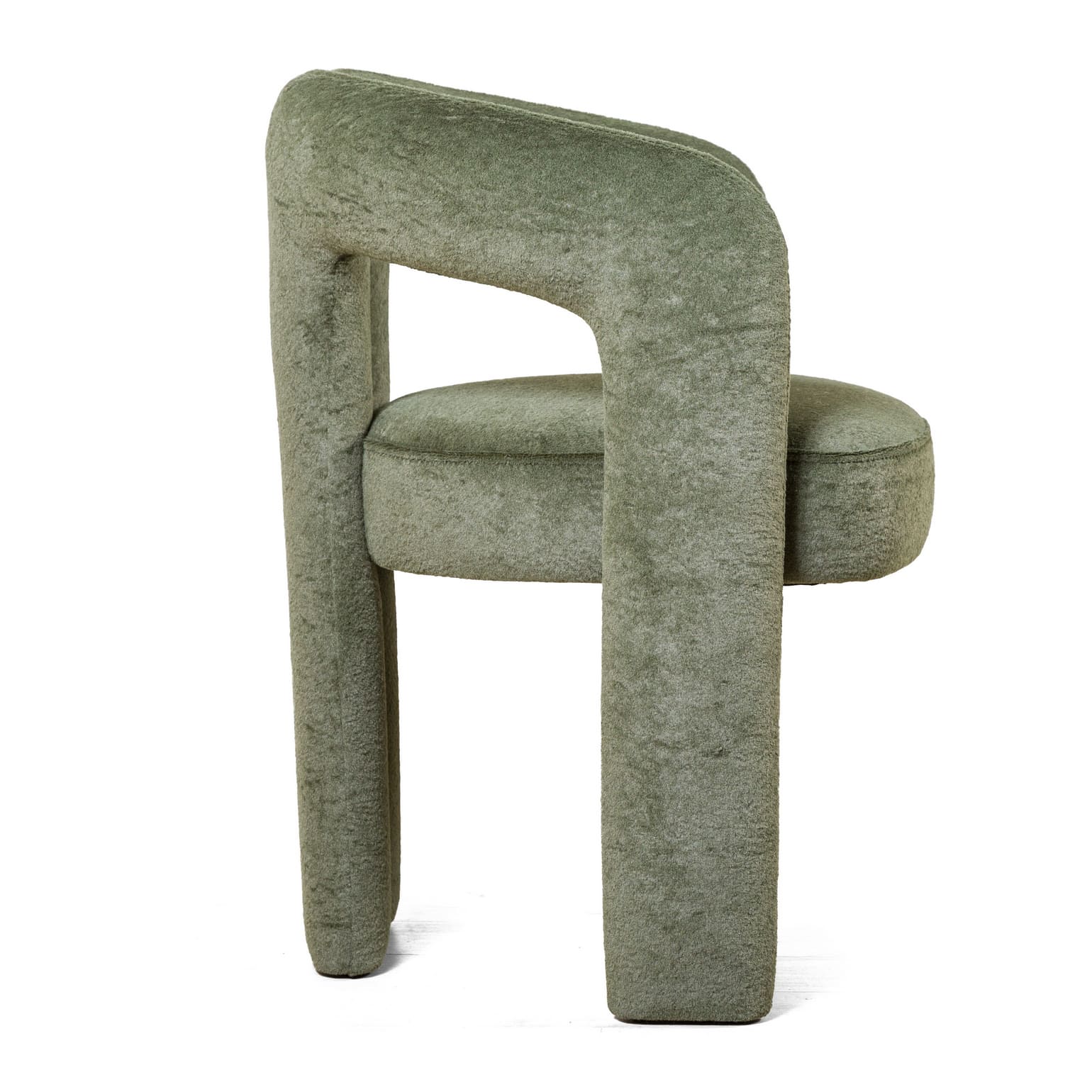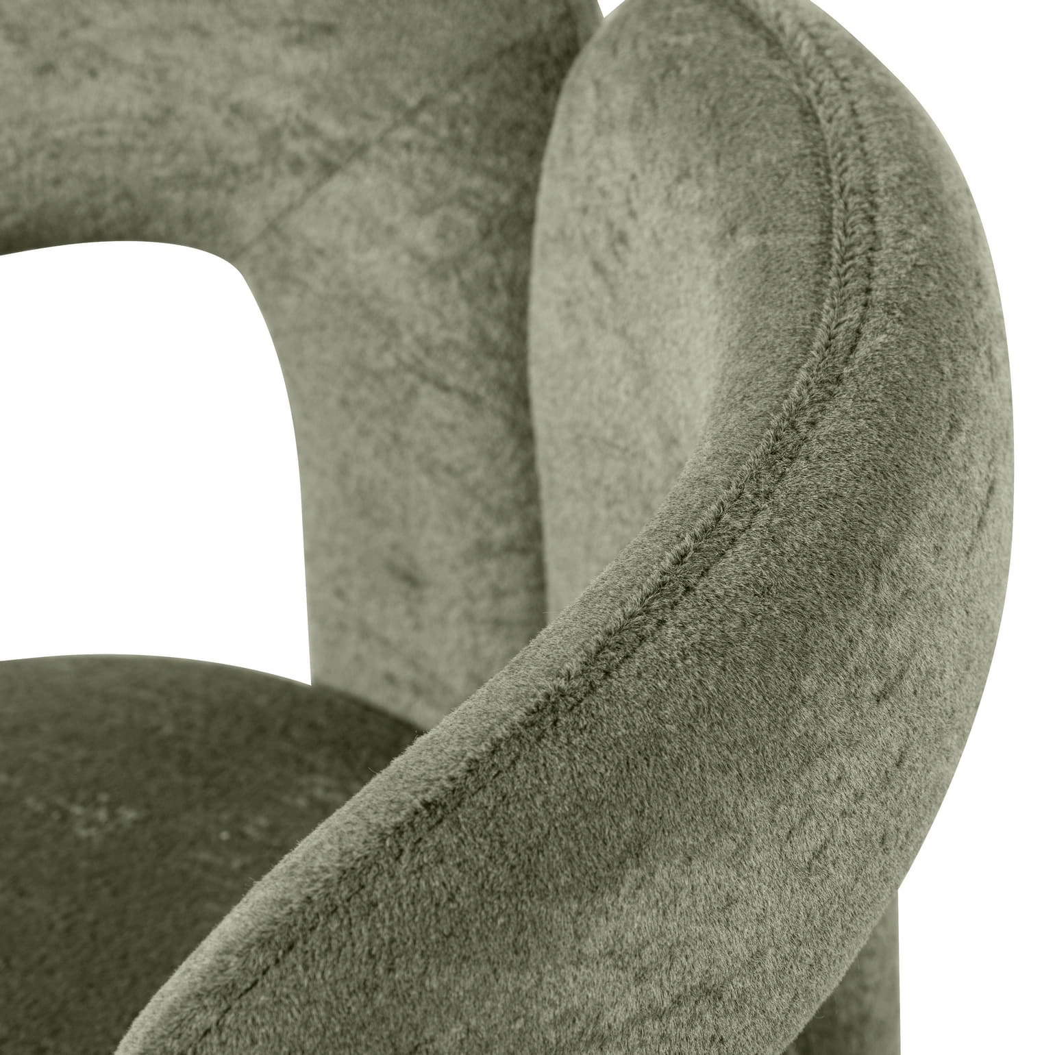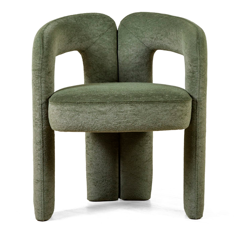 Angie бросает вызов традиционной конструкции. Вместо отдельных ножек — цельная, устойчивая платформа, которая визуально «вытекает» из основного объема. Этот прием создает мощный эффект монолита: полная обивка тканью сглаживает переходы, превращая кресло в идеальный объект для интерьера, где важны лаконизм и выразительная форма. Основание оснащено защитными пластиковыми заглушками, которые оберегают пол от царапин, оставаясь совершенно невидимыми.