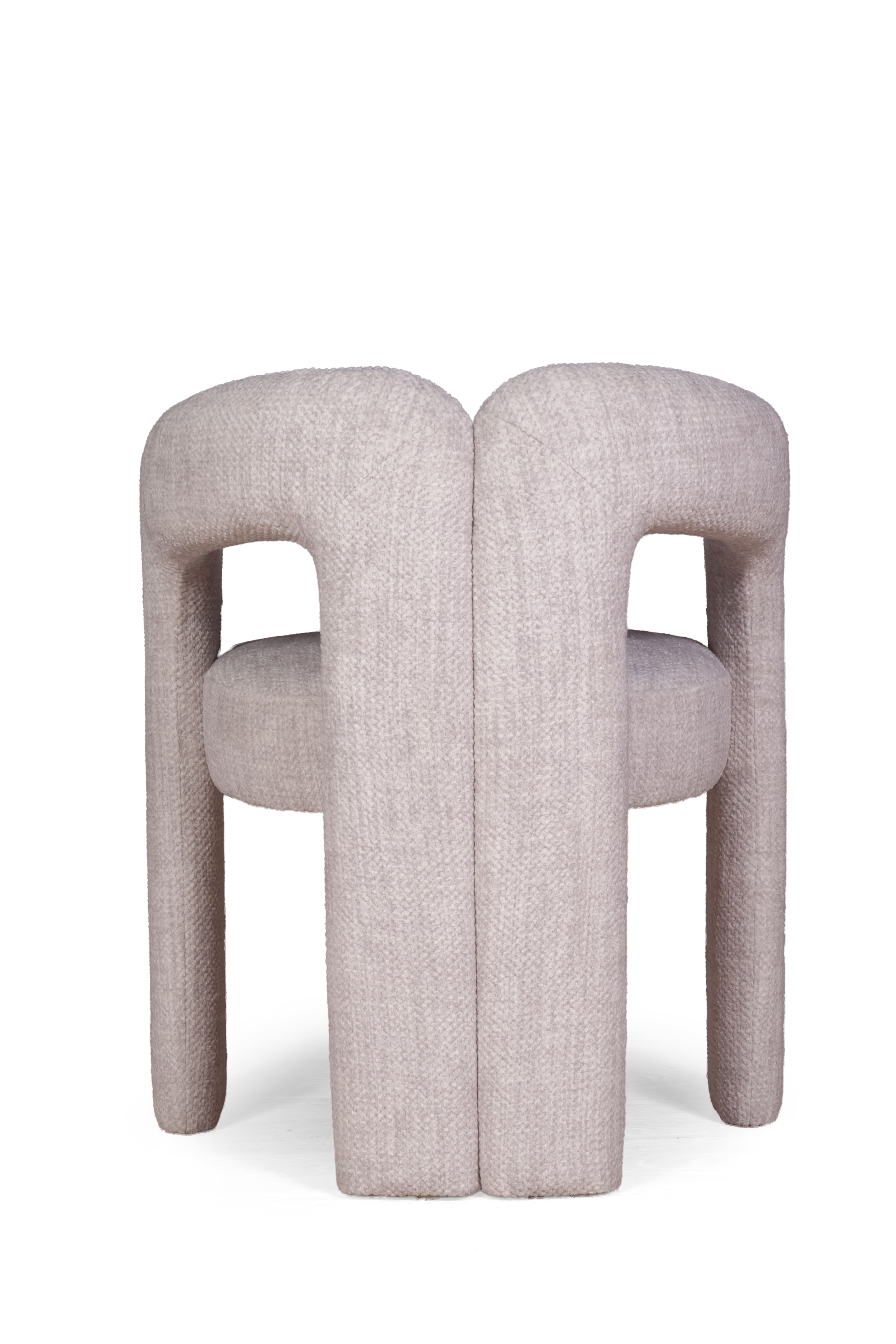 Angie бросает вызов традиционной конструкции. Вместо отдельных ножек — цельная, устойчивая платформа, которая визуально «вытекает» из основного объема. Этот прием создает мощный эффект монолита: полная обивка тканью сглаживает переходы, превращая кресло в идеальный объект для интерьера, где важны лаконизм и выразительная форма. Основание оснащено защитными пластиковыми заглушками, которые оберегают пол от царапин, оставаясь совершенно невидимыми.
