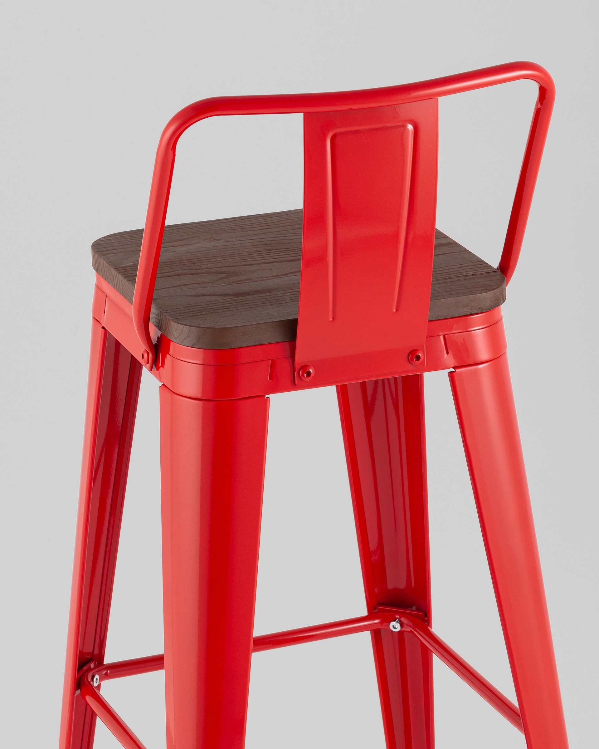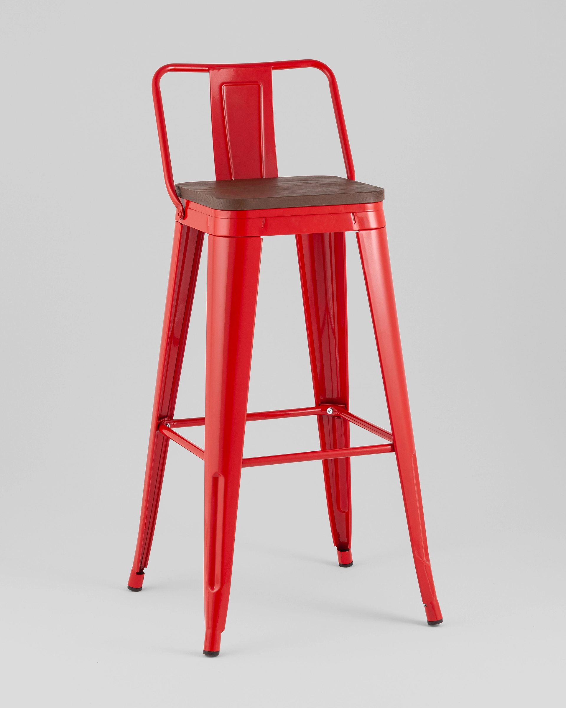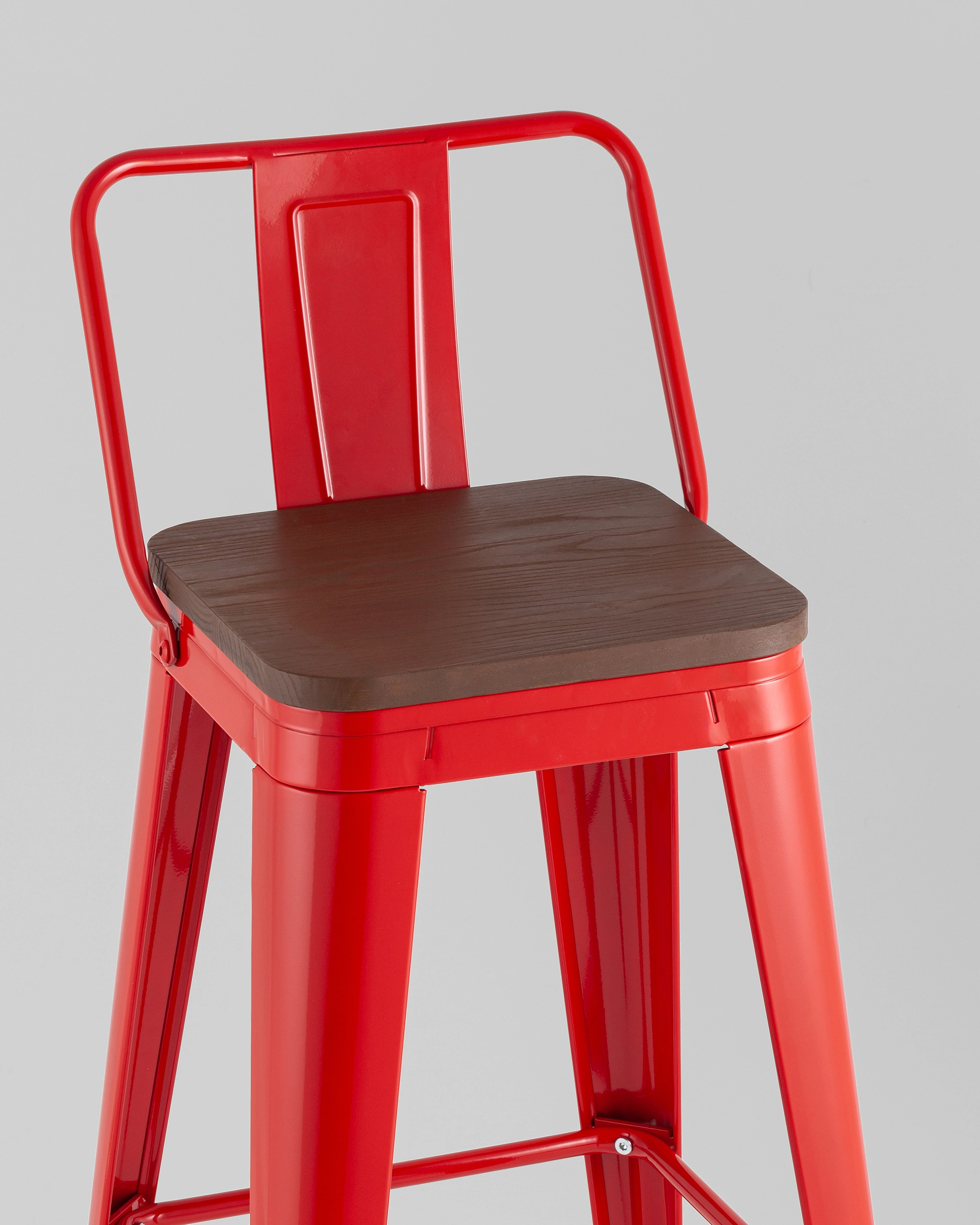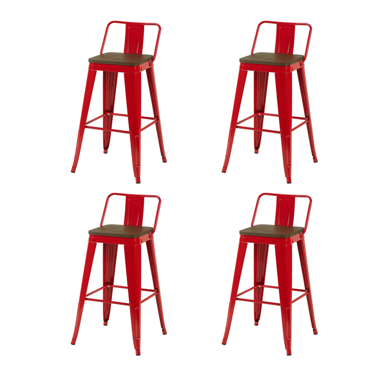 Стул барный TOLIX со спинкой красный глянцевый + темное дерево KD 4 шт.