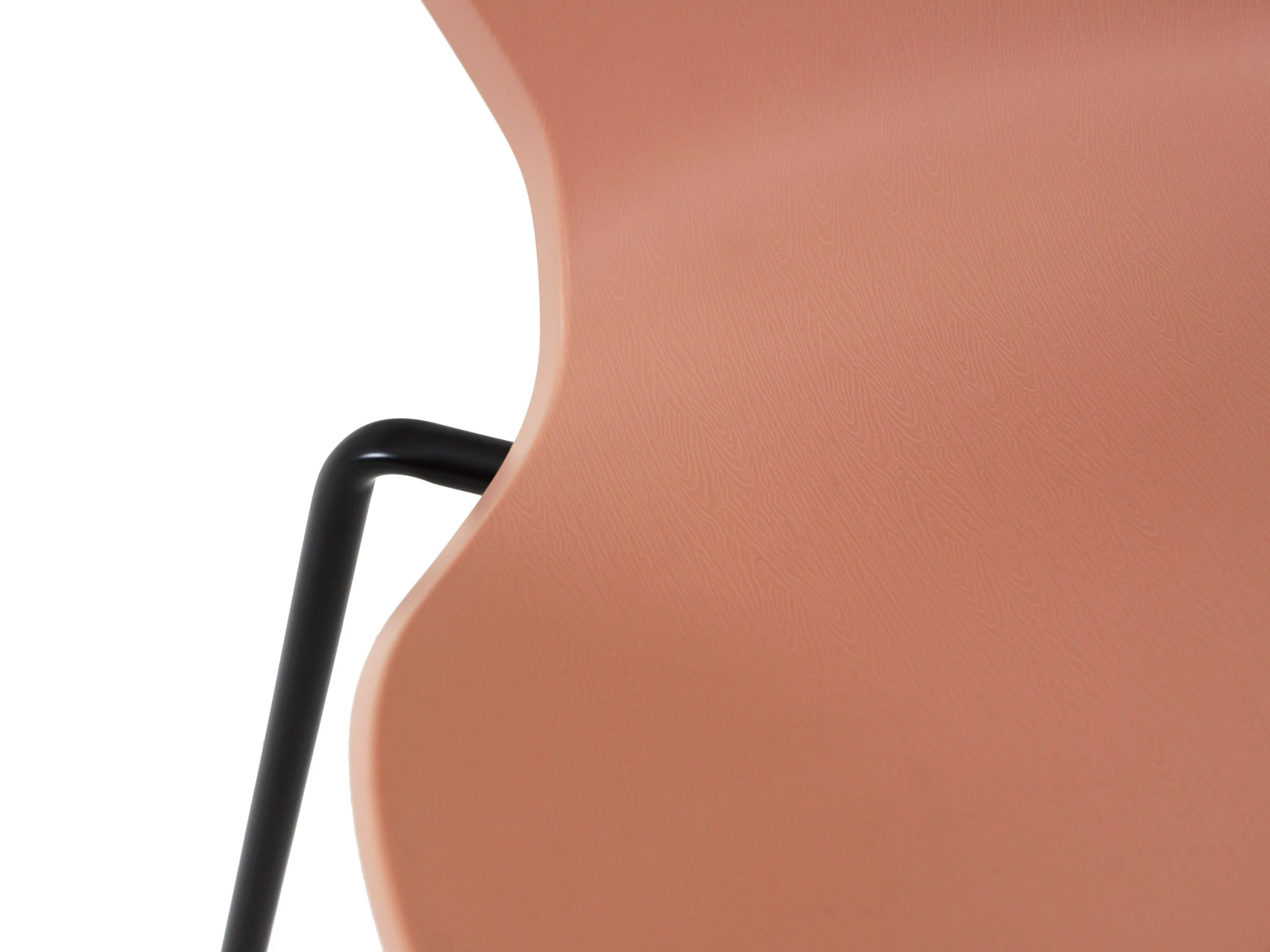Материал ножек - металл, материал сиденья - пластик. На поверхности пластикового сидения и спинки сделано теснение в виде структуры дерева.