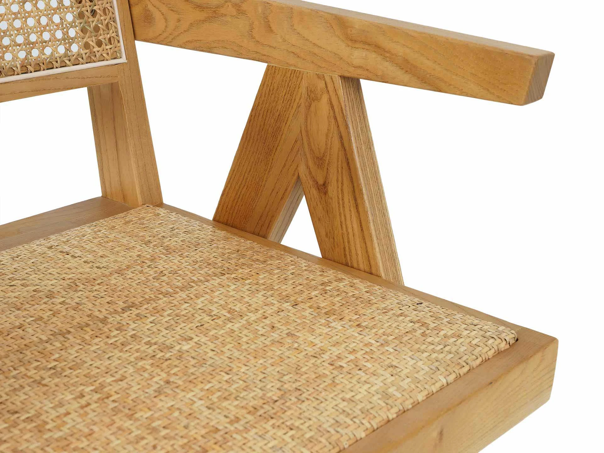 Материал каркаса и ножек - массив вяза, материал сиденья и спинки - натуральный ротанг.