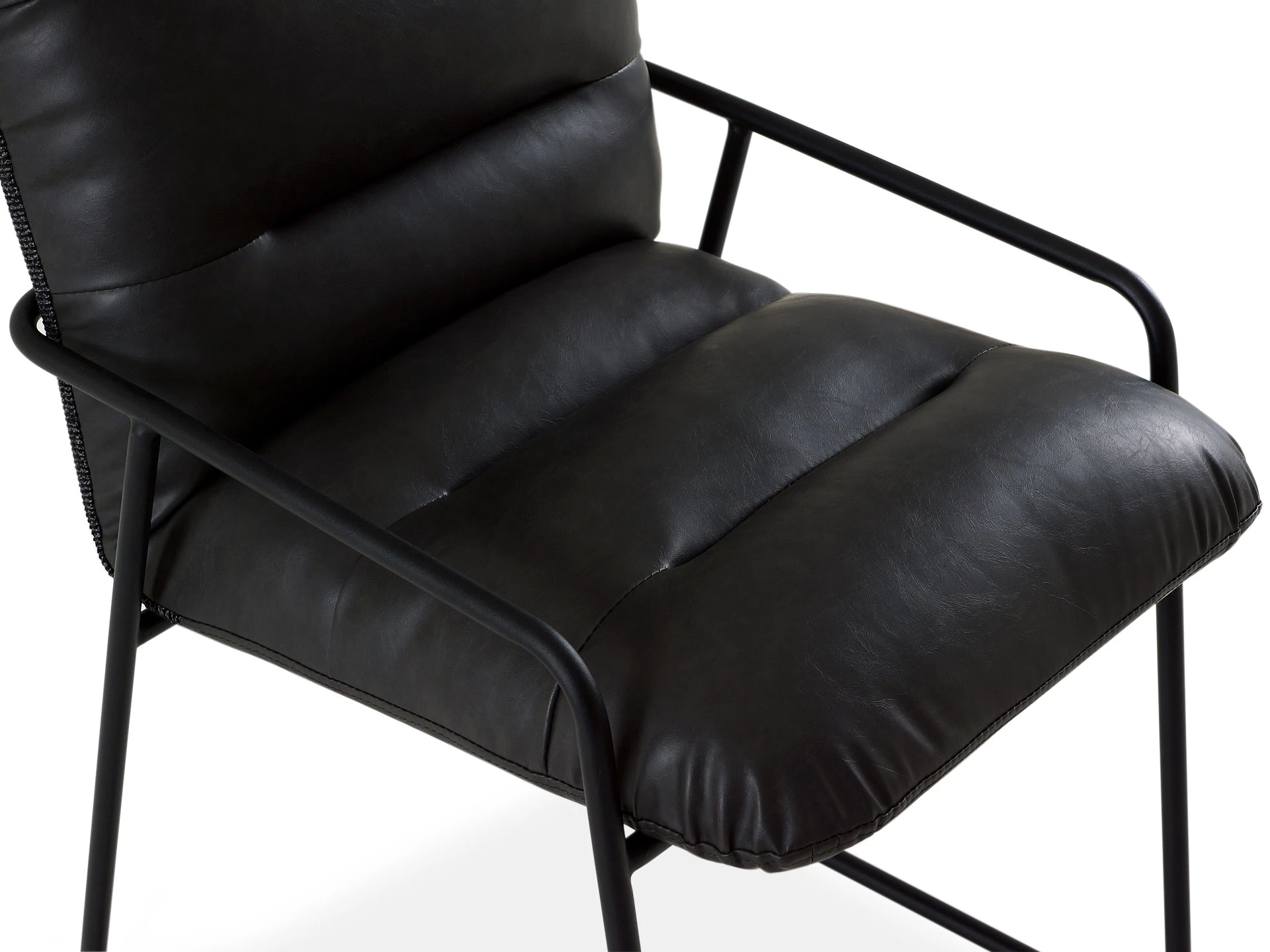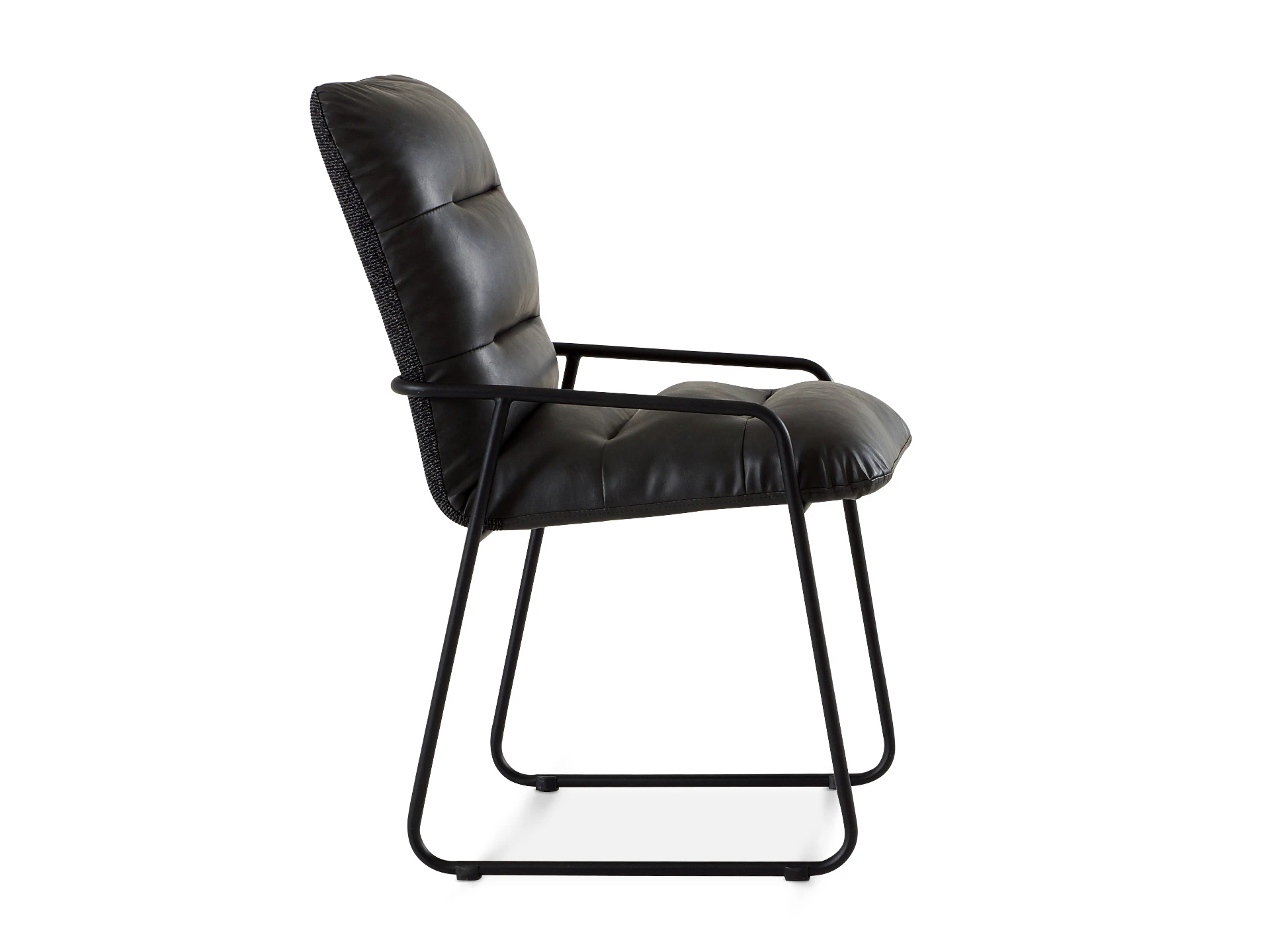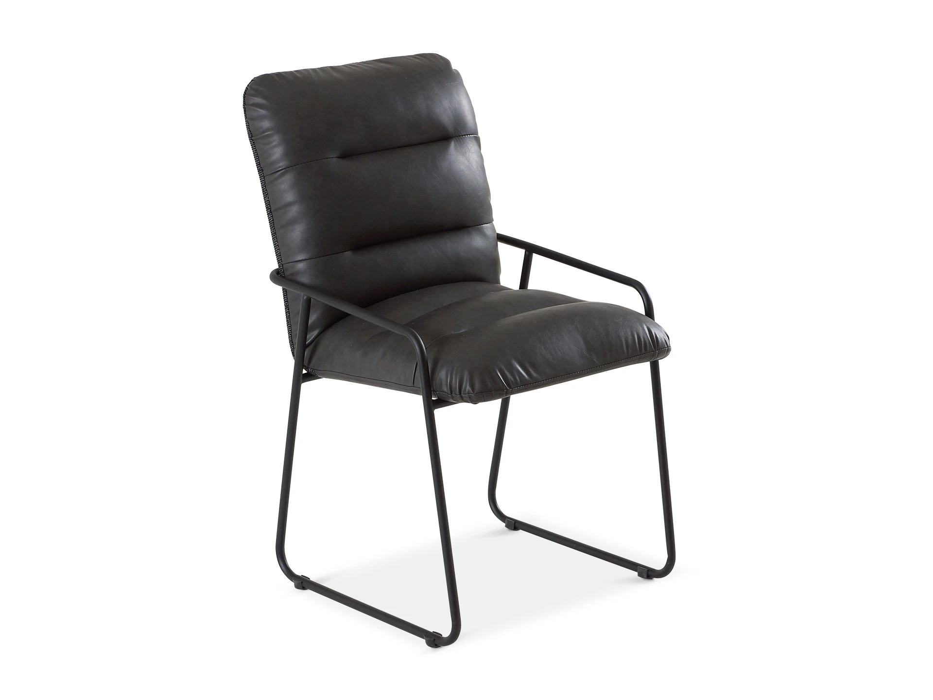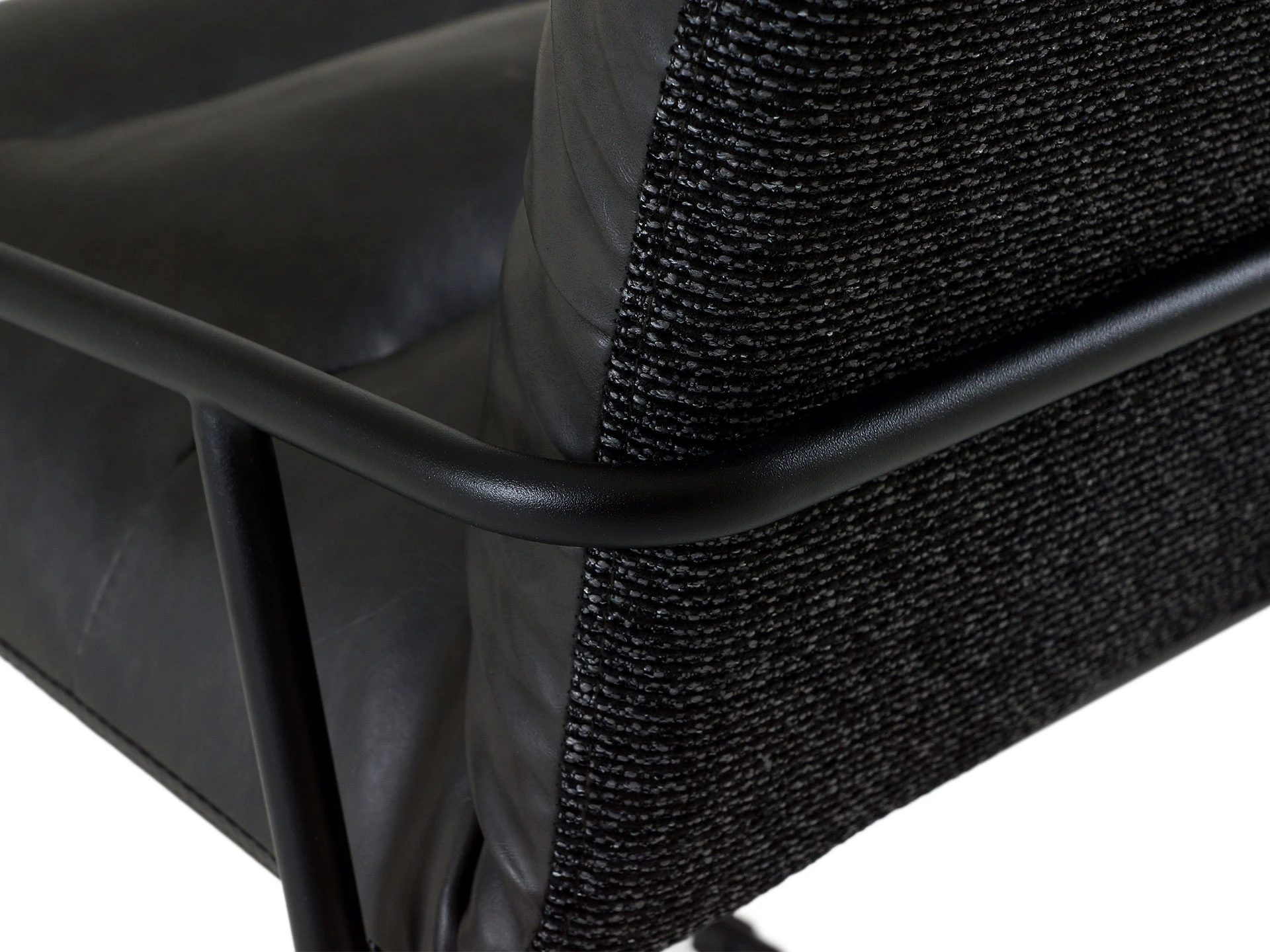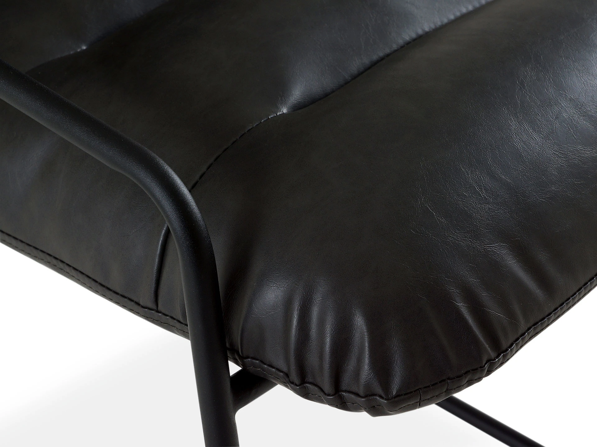 В основании — каркас из металла. Опоры-«полозья» расставлены широко, что обеспечивает надёжность и устойчивость. За удобную посадку отвечает мягкость сиденья и спинки. Обивка – прочная и долговечная экокожа.