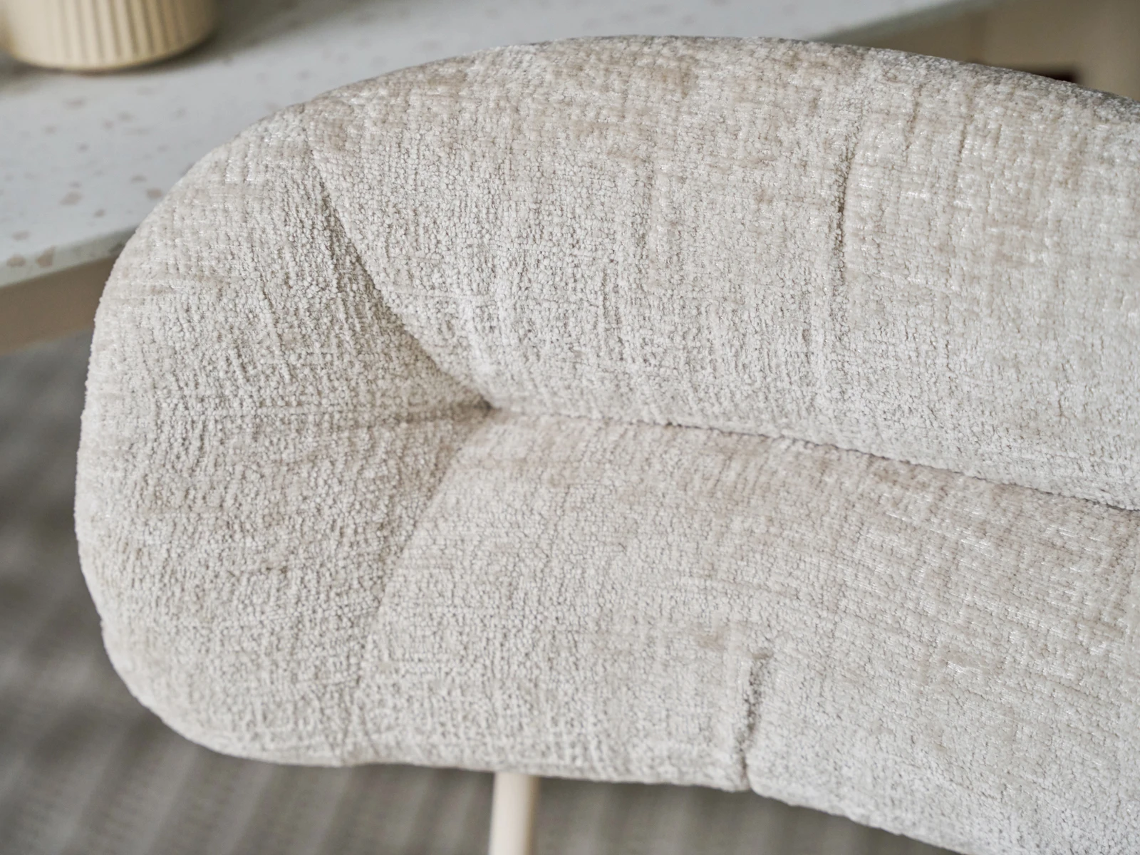 Конструкция даёт поддержку корпусу и комфортную посадку. Мягкая обивка выполнена из износостойкого шенилла. Ворсистая ткань приятна на ощупь, выглядит благородно, поддержит ощущение уюта, тепла. Универсальная модель гармонично впишется как в пространство с минималистичным настроением, так и в локацию с ярким характером. Подходит для небольших помещений, где важно экономить площадь.