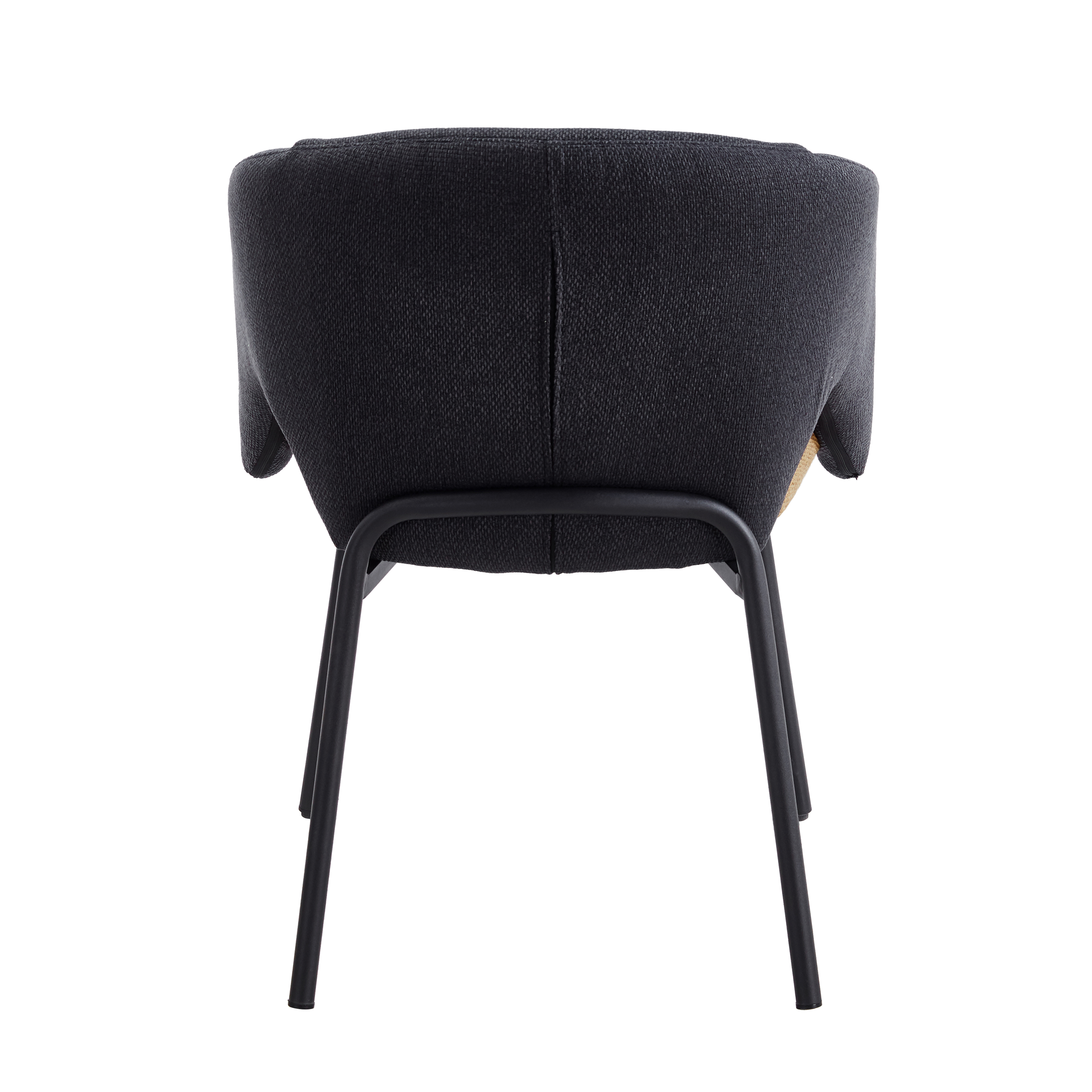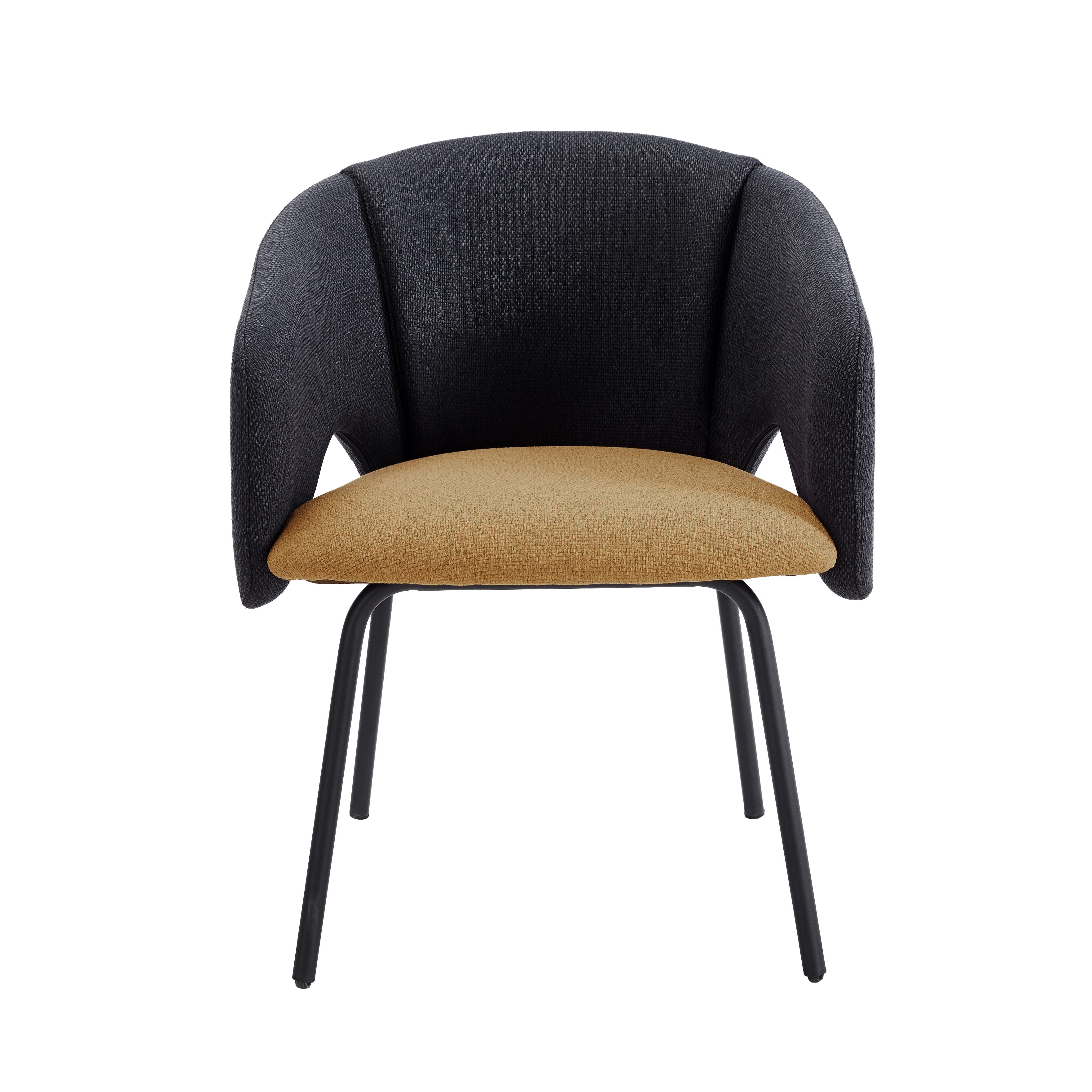 Архитектурный силуэт. Главная «фишка» стула — его необычная спинка. Она не просто поддерживает спину, а плавно перетекает в подлокотники, создавая ощущение защищенности и визуальную легкость за счет изящных боковых вырезов. Кажется, будто сиденье парит внутри текстильного каркаса.