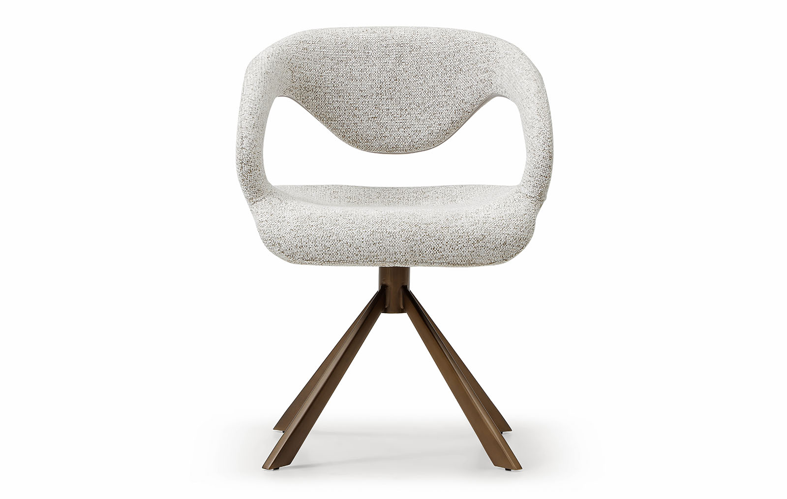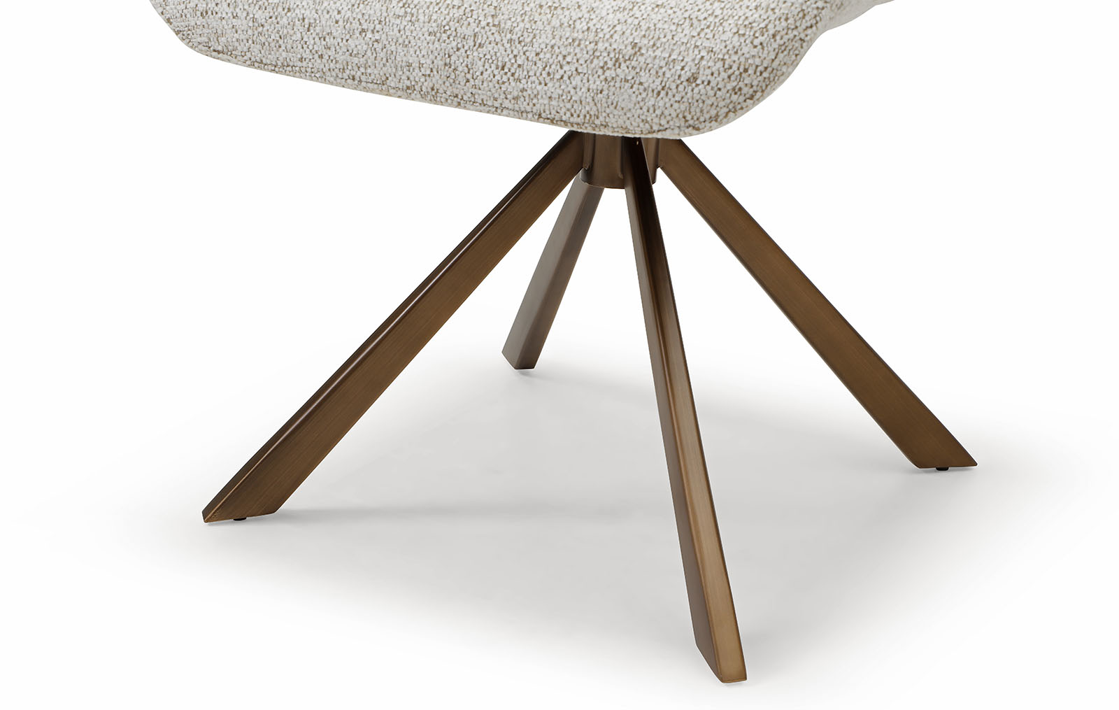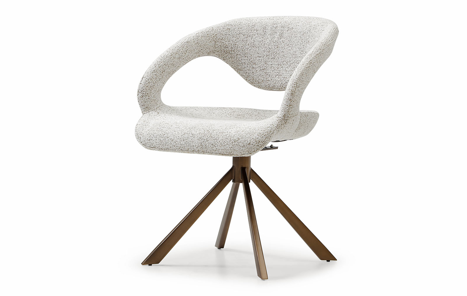 Поворотный механизм добавляет удобства в повседневной жизни — стул легко вращается на 360°, не требуя перемещения по полу. Устойчивая опора подчеркивает современный характер модели и обеспечивает надежность конструкции.