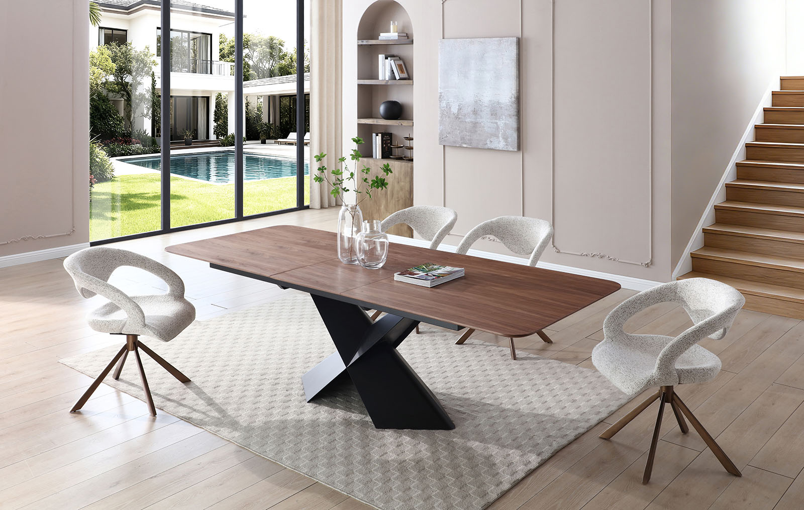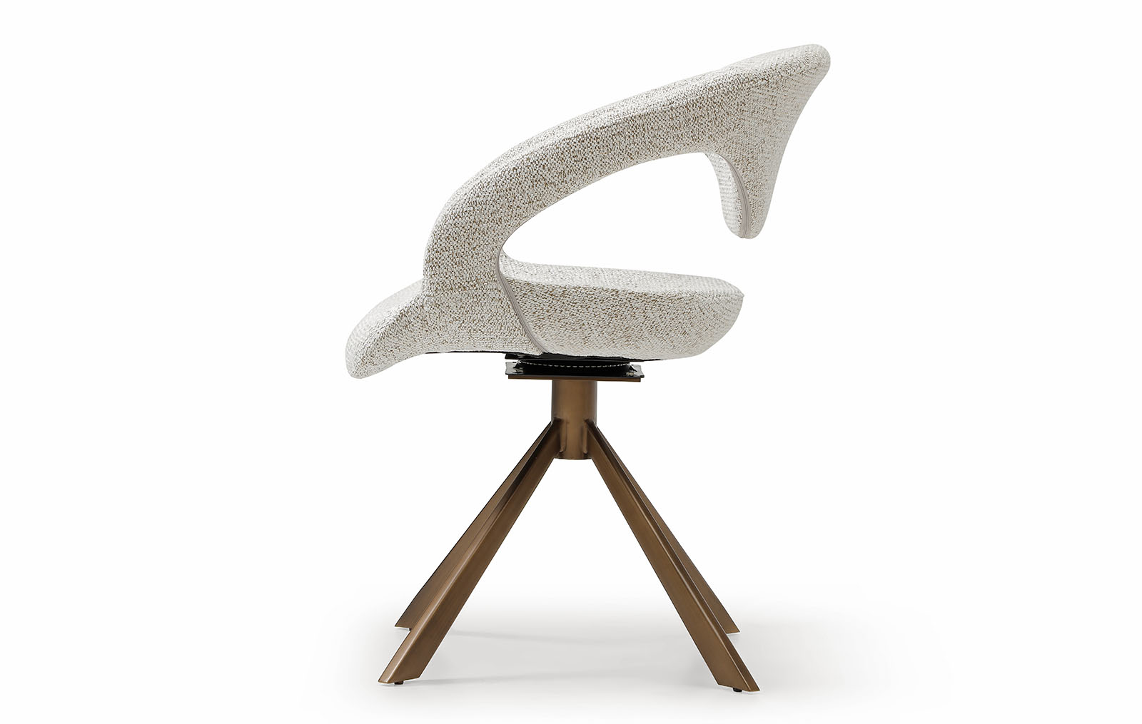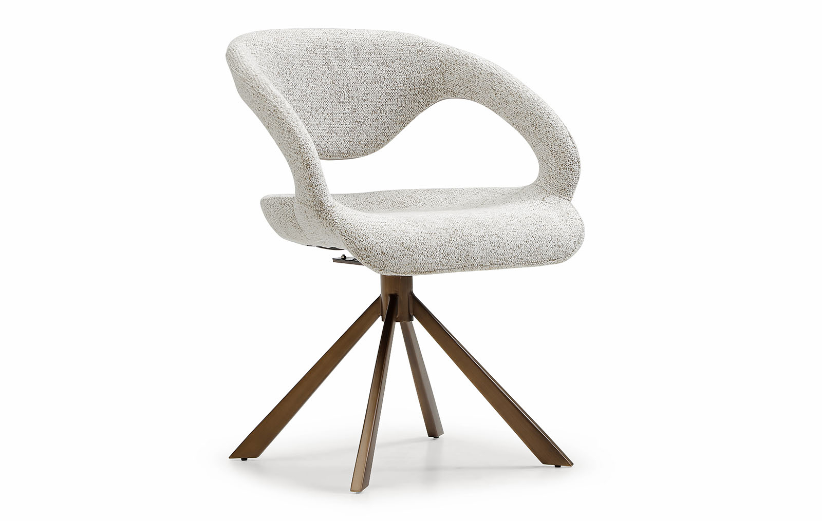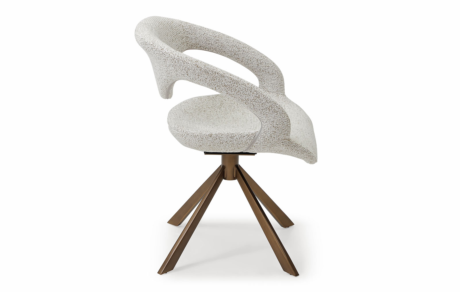 Поворотный механизм добавляет удобства в повседневной жизни — стул легко вращается на 360°, не требуя перемещения по полу. Устойчивая опора подчеркивает современный характер модели и обеспечивает надежность конструкции.