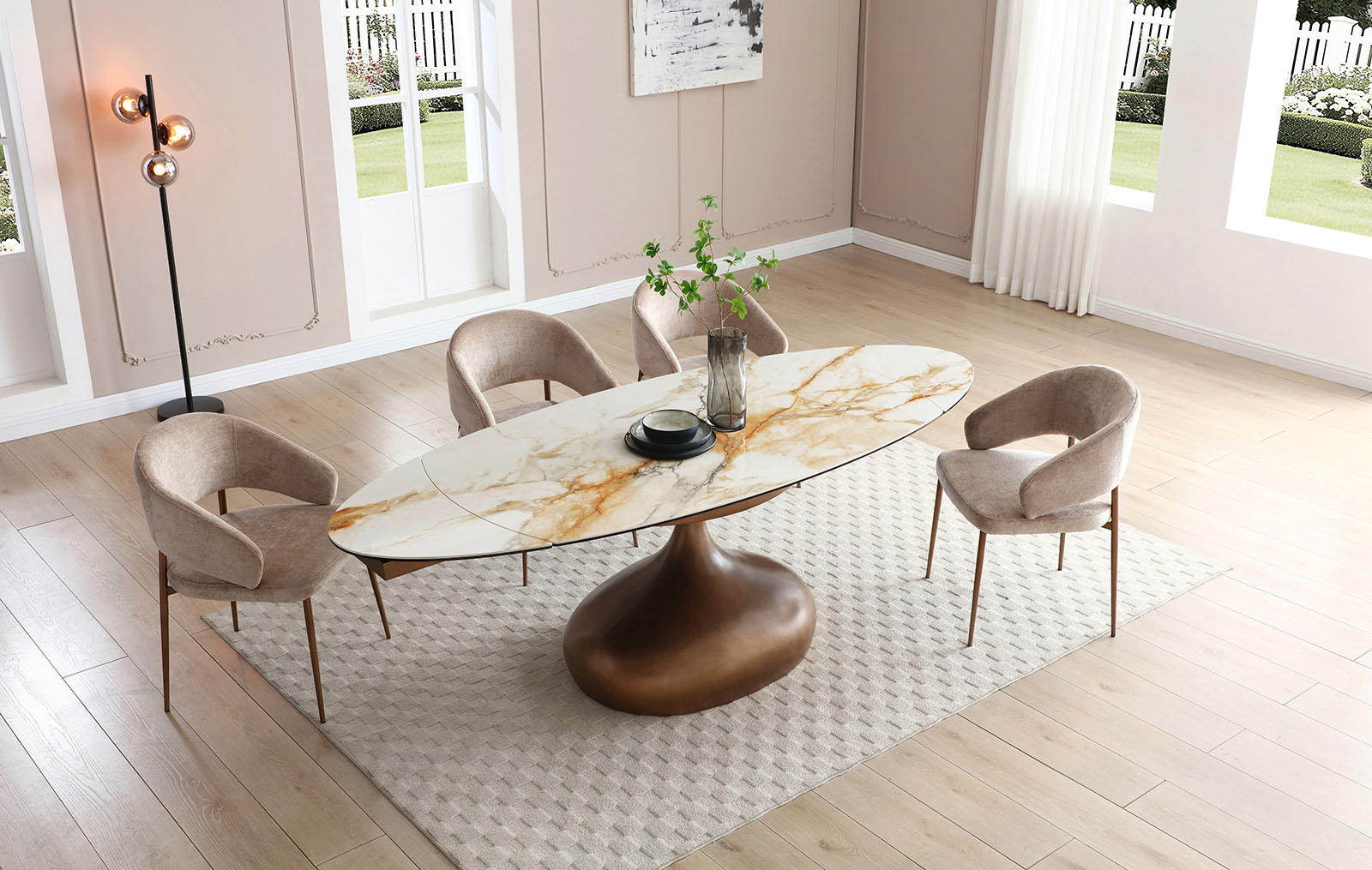 Изящные ножки выполнены из металла в матовом бронзовом оттенке.