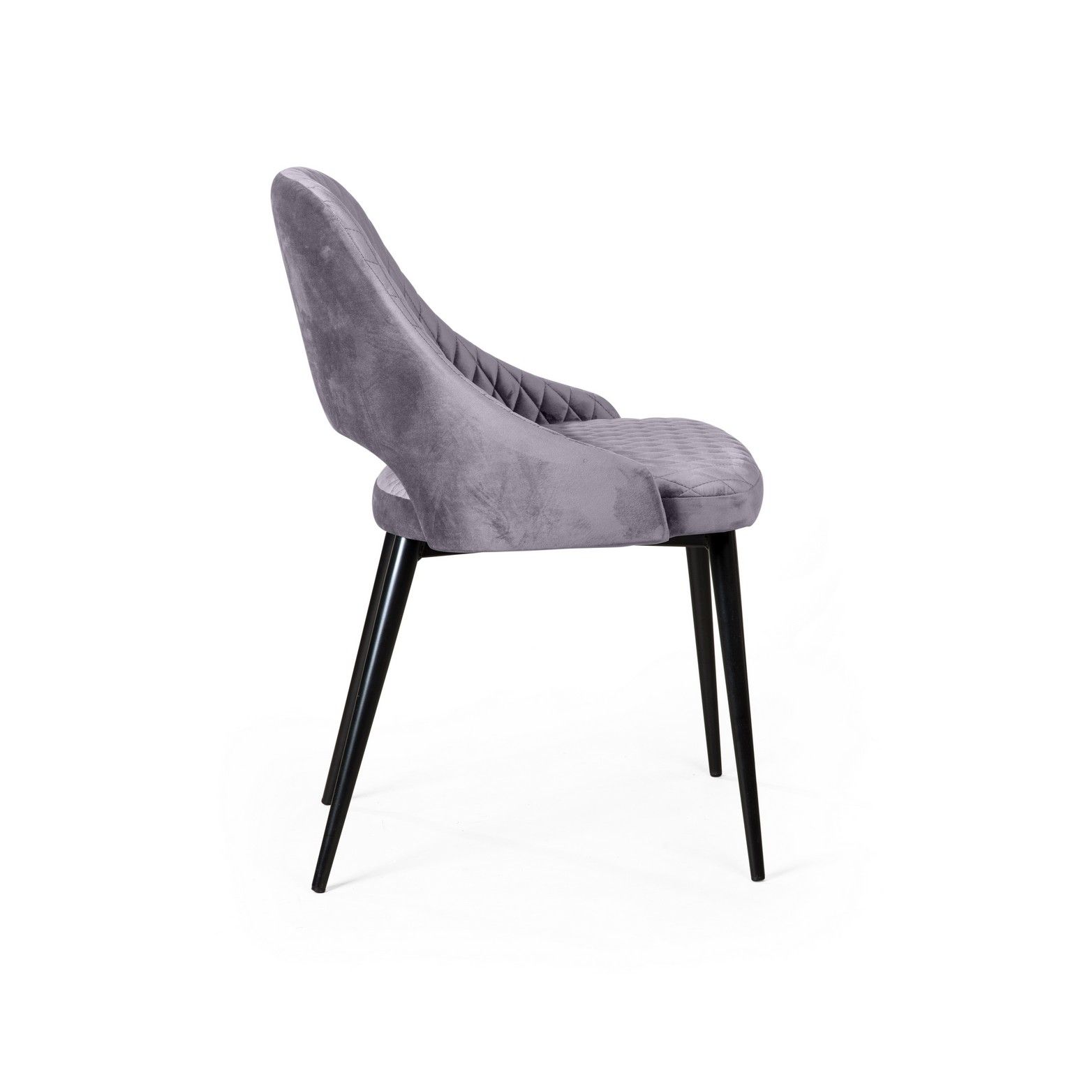 Изюминка стула William – металлические ножки черного матового цвета, излишне скошенные назад, как часть дизайнерской задумки. На ножках предусмотрены специальные пластиковые накладки, которые придают стулу дополнительную устойчивость и защищают пол от царапин.