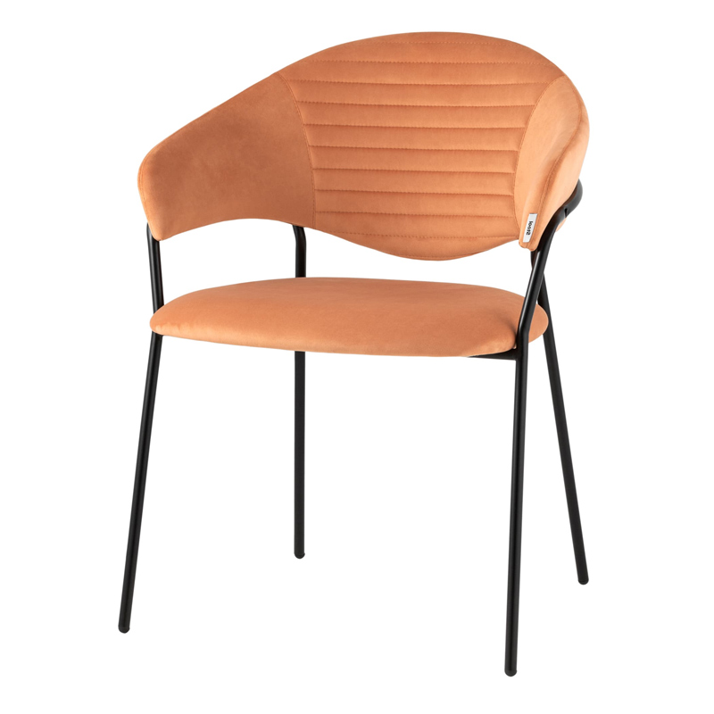 Запросить индивидуальное предложениеСтильный кухонный стул с оригинальной формой спинки, высокой поддержкой и подлокотниками. В качестве обивки используется мягкий велюр – приятный на ощупь износостойкий, гигроскопичный материал. Металлический каркас в черном цвете огибает спинку и выступает аккуратным акцентом модели. Широкое сиденье обеспечивает удобную посадку и уют.