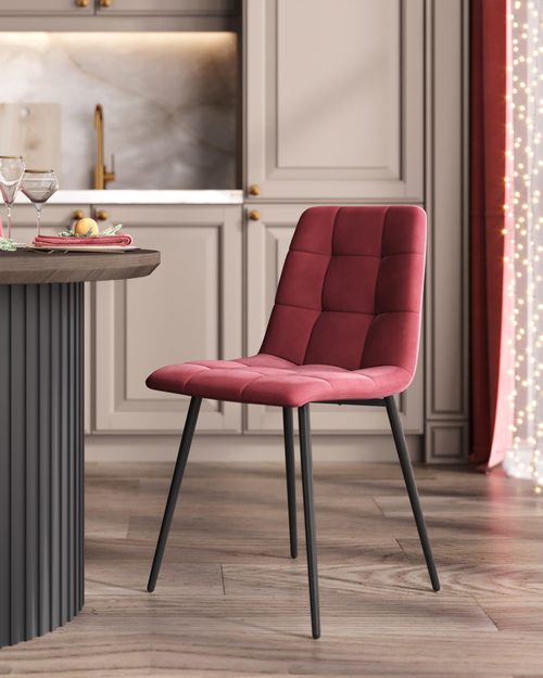 Запросить индивидуальное предложениеКлассический стул для кухни без подлокотников на металлическом каркасе позволит сидеть с удобством человеку любой комплекции. Плавная форма сиденья и спинки, красивая строчка на внутренней стороне велюровой обивки, эргономичная спинка, аккуратное исполнение и качественные материалы. Стулья прослужат долгие годы, не требуют много времени для ухода. Большое количество расцветок сиденья позволят подобрать стулья в тон интерьеру. Стандартная высота сиденья делает его универсальным вариантом для обустройства обеденной зоны.