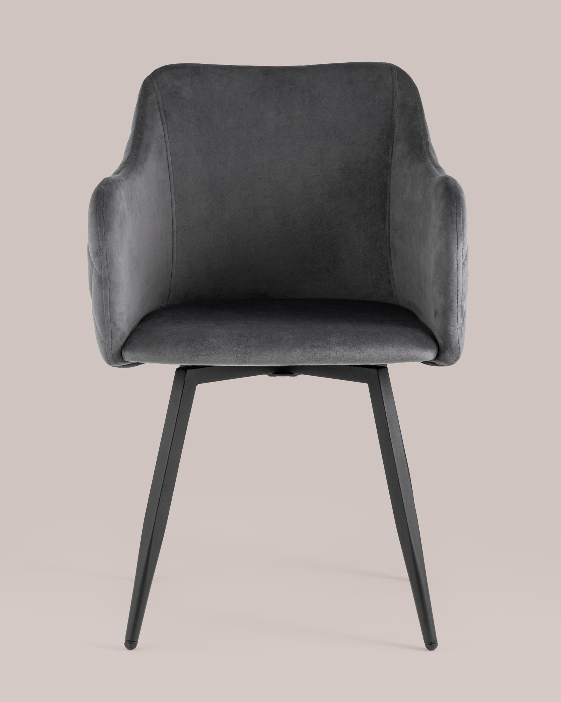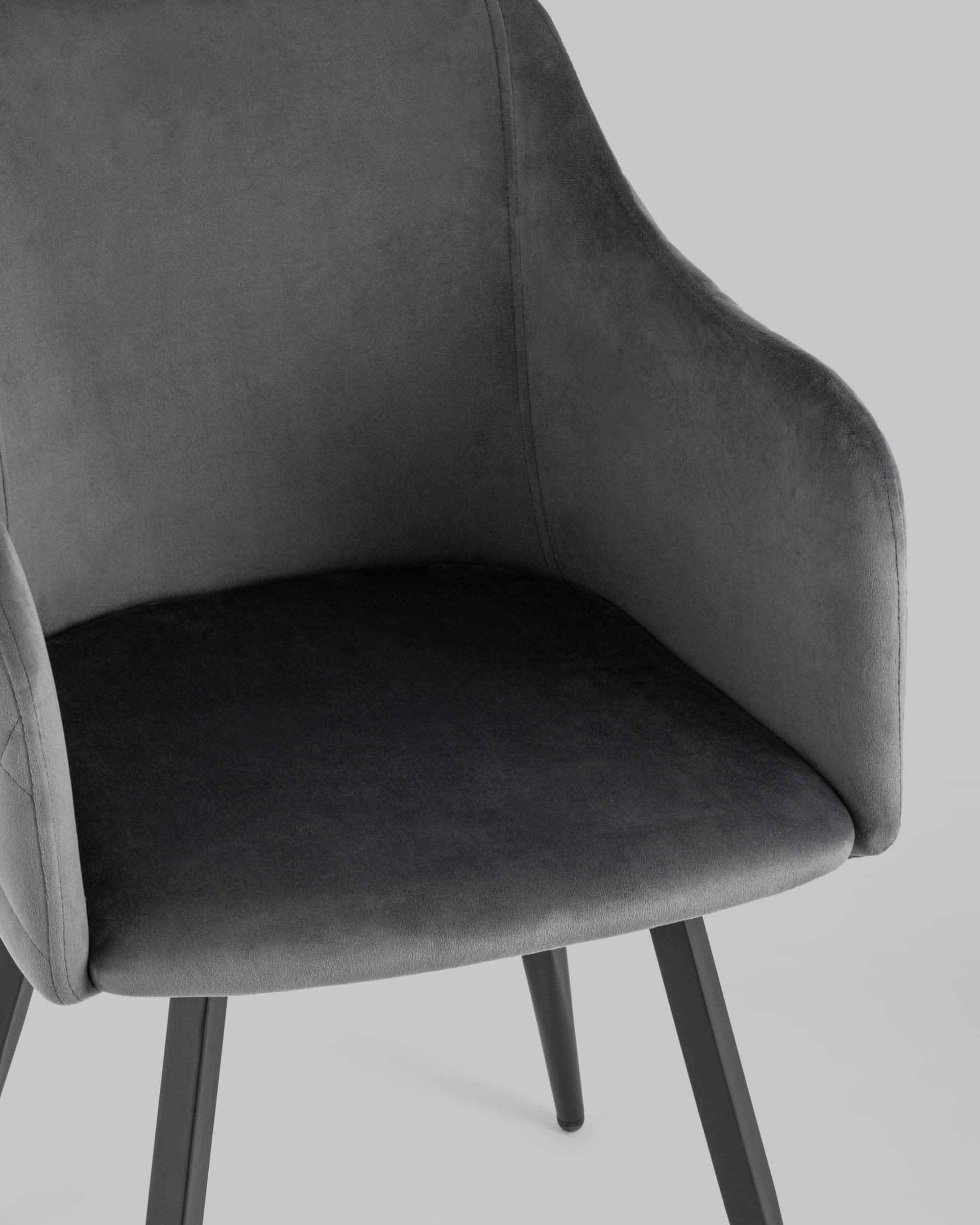 Запросить индивидуальное предложениеМягкий стул с округлой спинкой анатомической формы и удобными подлокотниками подарит комфорт и уют. В качестве обивки используется велюр - прочный износостойкий и приятный на ощупь материал. Внешняя сторона спинки и подлокотников имеет декоративную строчку в виде ромбов.