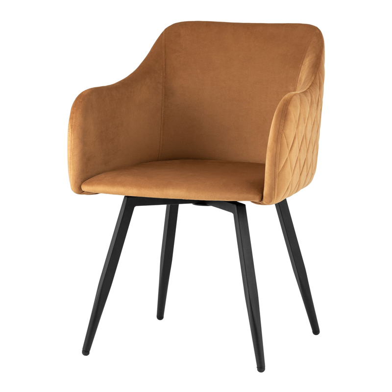 Запросить индивидуальное предложениеМягкий стул с округлой спинкой анатомической формы и удобными подлокотниками подарит комфорт и уют. В качестве обивки используется велюр - прочный износостойкий и приятный на ощупь материал. Внешняя сторона спинки и подлокотников имеет декоративную строчку в виде ромбов.