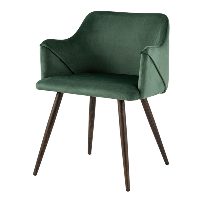 Запросить индивидуальное предложениеСтильный и мягкий кухонный стул имеет широкую эргономичную спинку и удобные подлокотники. Обивкой послужила высококачественная плотная ткань. Ножки металлические с принтом под дерево. Высота подлокотников от пола - 63,5 см.