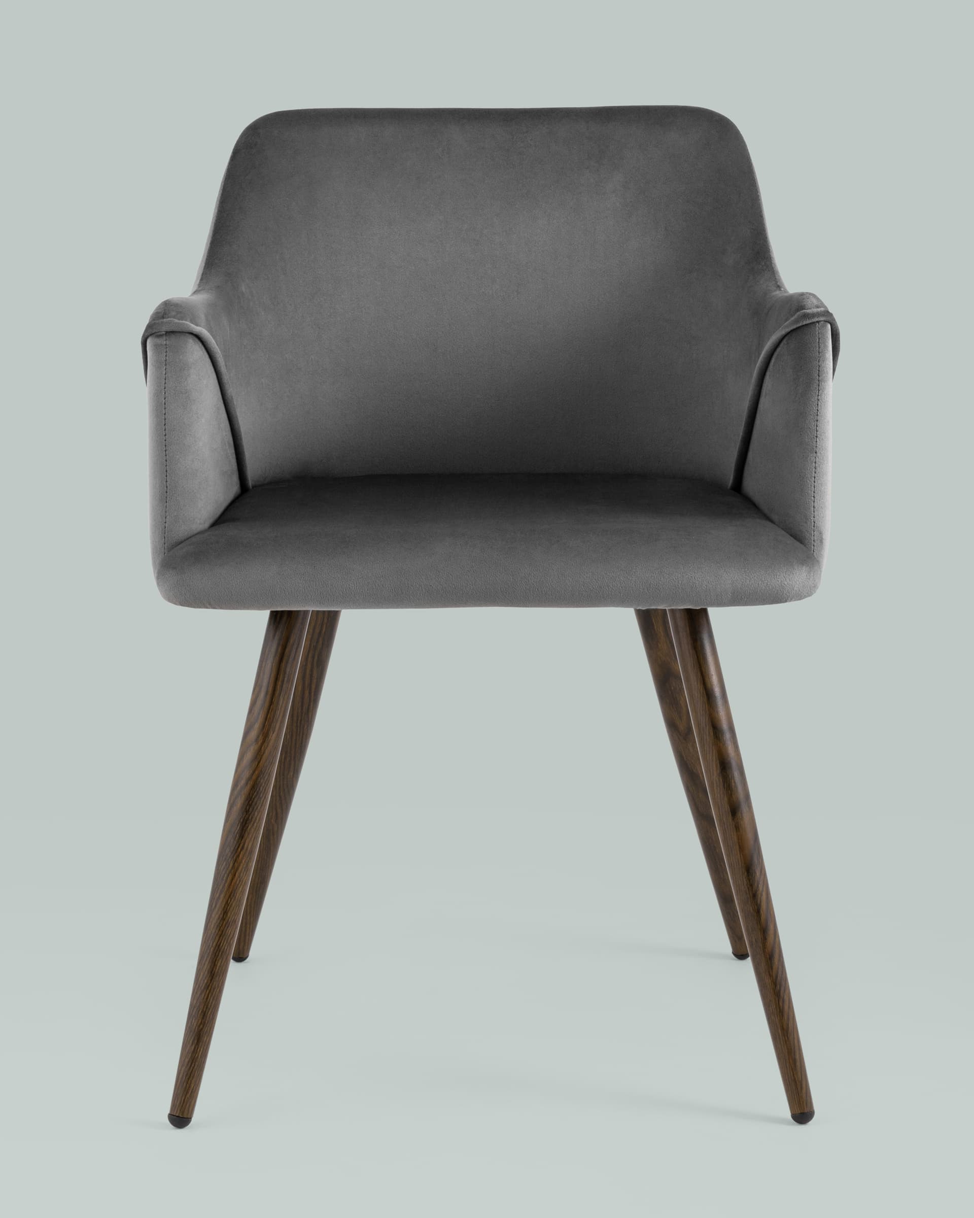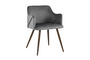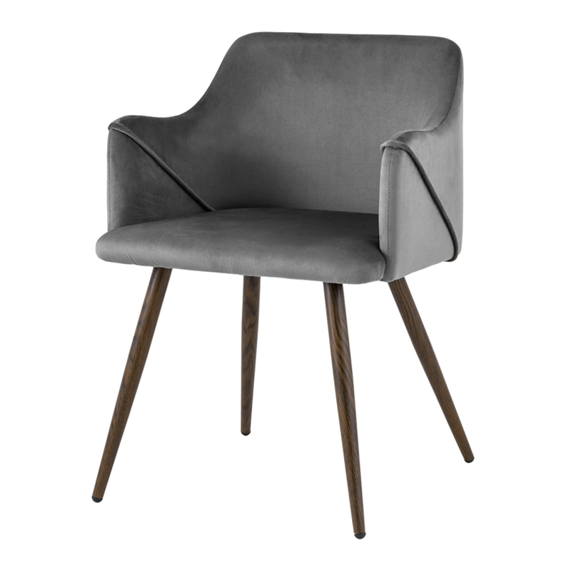 Запросить индивидуальное предложениеСтильный и мягкий кухонный стул имеет широкую эргономичную спинку и удобные подлокотники. Обивкой послужила высококачественная плотная ткань. Ножки металлические с принтом под дерево. Высота подлокотников от пола - 63,5 см.