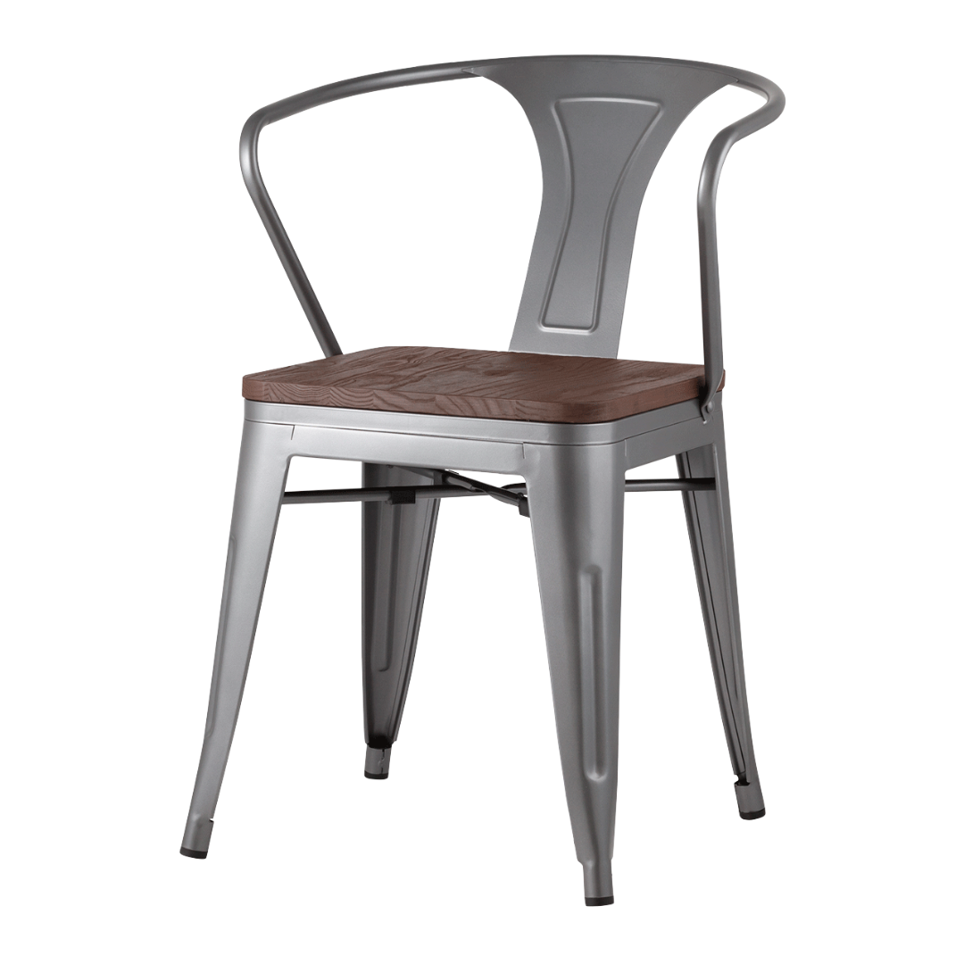 Стул TOLIX ARM WOOD с подлокотниками серебристый