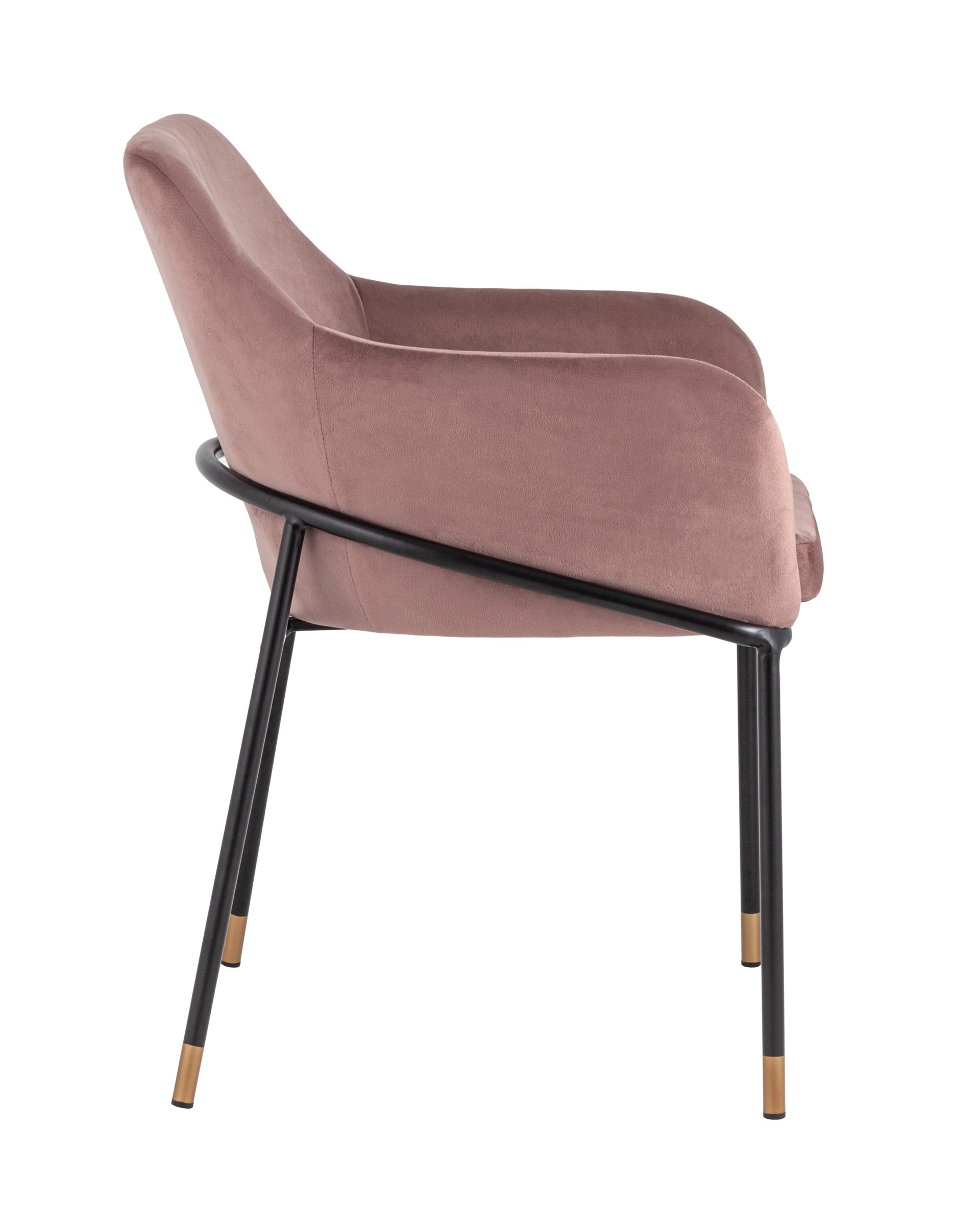 Запросить индивидуальное предложение Стул с эргономичной посадкой, мягким сиденьем и широкой удобной спинкой и мягкими подлокотниками. Каркас и ножки черного матового цвета изготовлены из прочного металла с золотым декором, обивка из велюра - износостойкого материала с приятной на ощупь структурой.