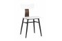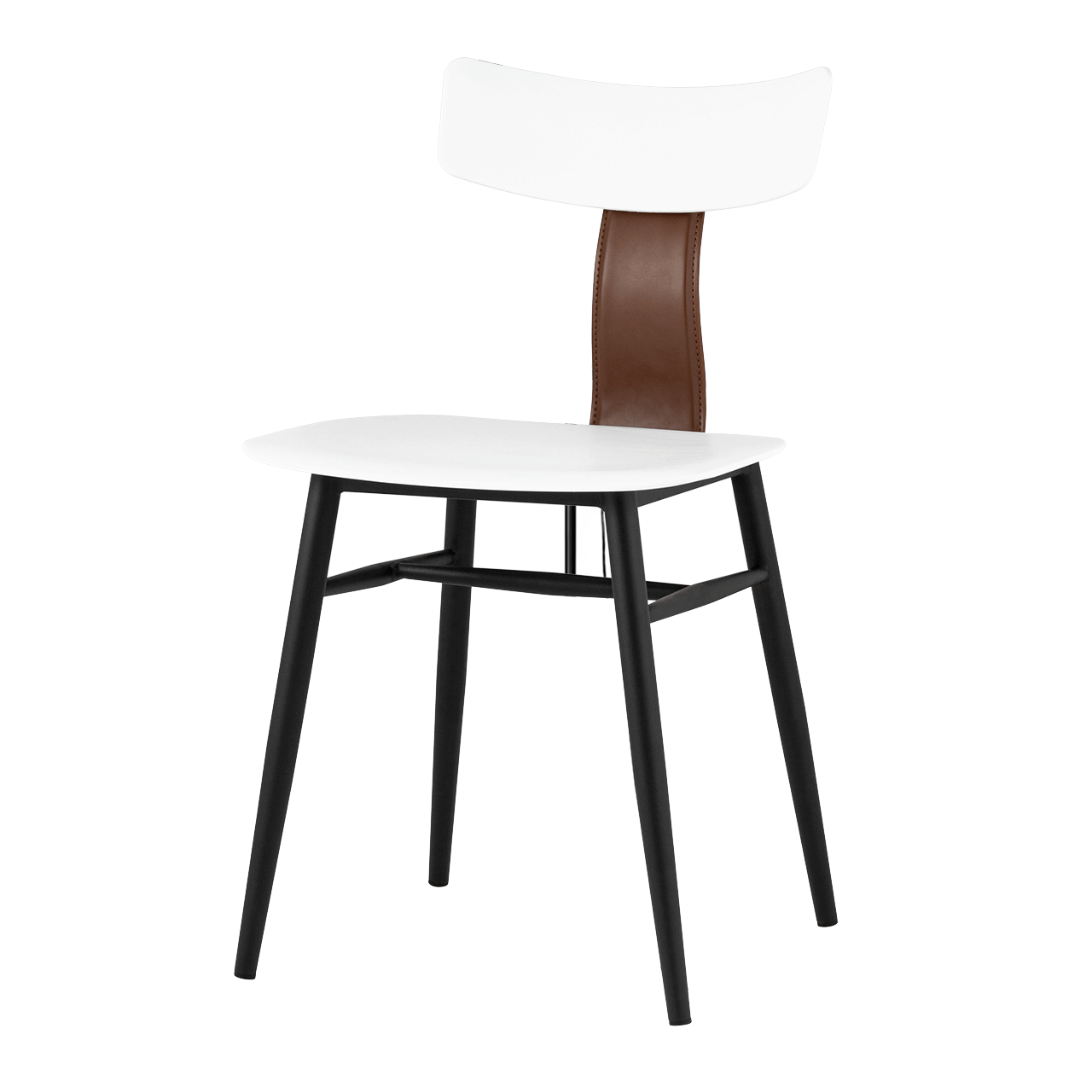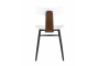 Сиденье стула выполнено из пластика, спинка декорирована цветным элементом из экокожи. Ножки металлические.