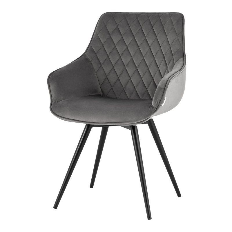 Запросить индивидуальное предложениеСтильный вращающийся стул Сеул станет прекрасным дополнением кухни, гостиной или рабочего места. Мягкая обивка выполнена из велюра - прочного, износостойкого и легкого в уходе материала. Внутренняя сторона спинки декорирована ромбовидной стежкой. Анатомическая форма сиденья и небольшие подлокотники обеспечивают максимальное удобство и комфорт. Металлические ножки выдерживают значительные нагрузки. Подпятники на ножках не испортят напольное покрытие и предохраняют от скольжения.